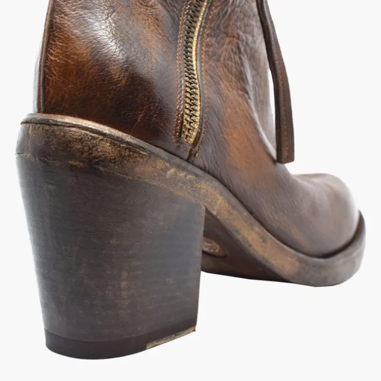 Eleganckie damskie botki o ciekawym fasonie z asymetrycznym zapięciem, zaprojektowane przez uznaną włoską markę Maledetti Toscani. Zgrabnie dopasują się do każdej jesiennej stylizacji, a przy okazji zadadzą jej wyjątkowego szyku. Skórzane botki damskie Tronchetto są wykonane z niezwykle trwałej skóry bawolej garbowanej roślinnie oraz szyte w technice IDEAL.