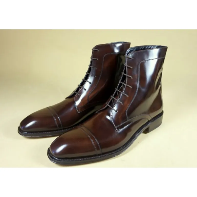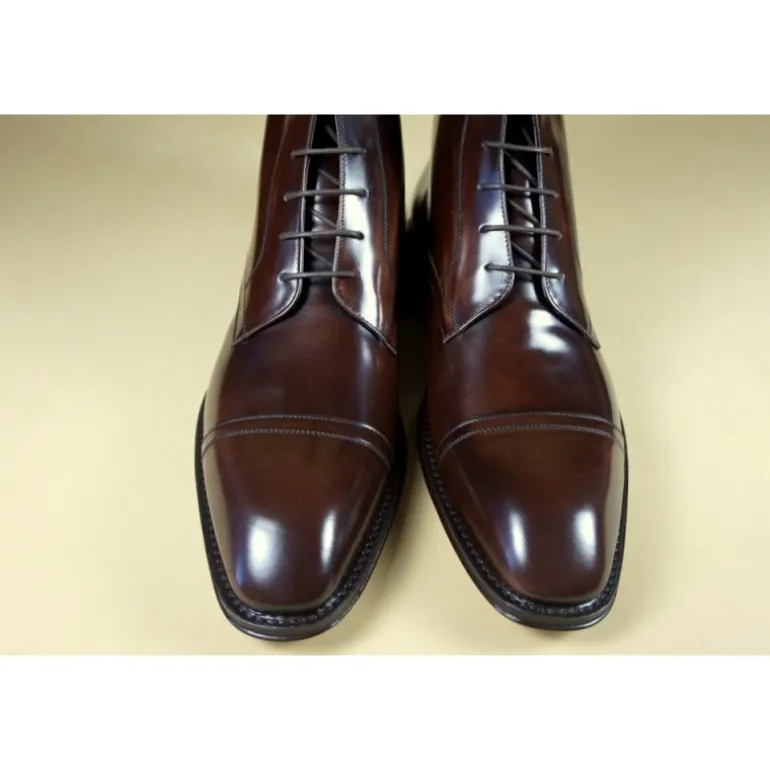 Opis : Przepiękne wysokie buty, bardzo eleganckie, niezbędne w garderobie każdego mężczyzny. Wykonane ze skóry cielęcej, wykończenie polished binder efekt cordovan.