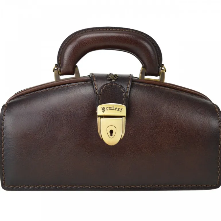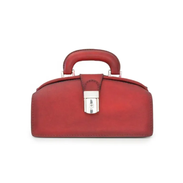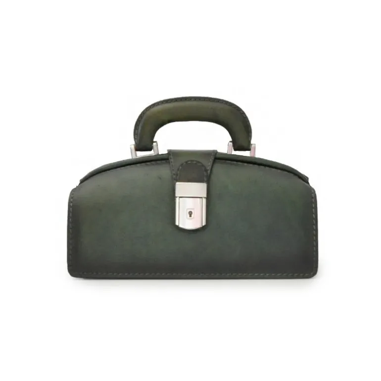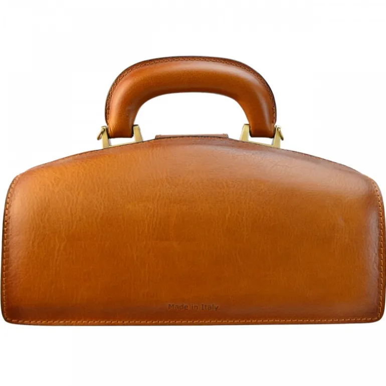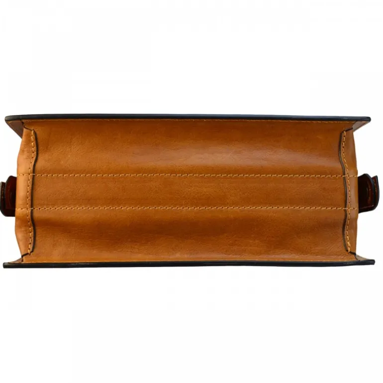 Materiał – Skóra cielęca. Rączka/Pasek Metal pokryty skórą. Części metalowe Pozłacane. Zamknięcie Zamykana na klucz. Szerokość 27,5 cm. Wysokość 15,5 cm. Głębokość 15 cm. Waga kg 0,800.