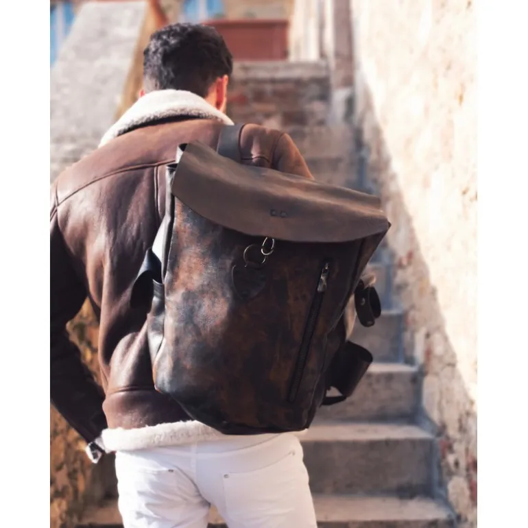 Średni skórzany plecak z zamkiem z boku. Wykonany przez włoskich mistrzów kaletnictwa ze skóry garbowanej roślinnie przez konsorcjum toskańskie, którego obróbka z dodatkiem tanin pozyskiwanych z drzew sprawia, że jest zdrowa i czysta. Styl vintage nadaje Twojemu strojowi odrobinę piękna.