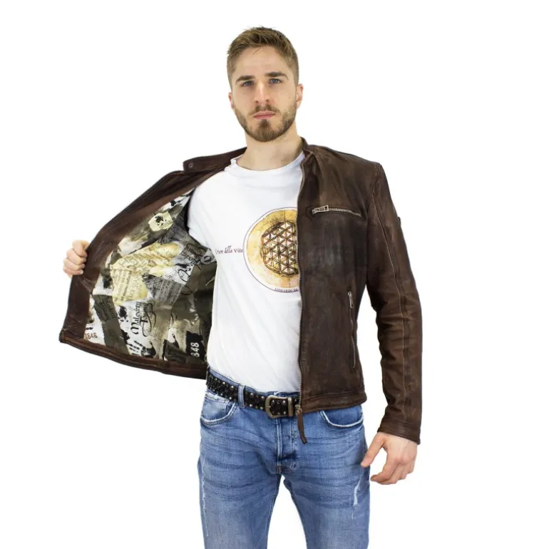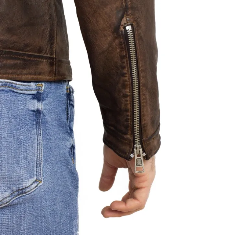 Elegancka kurtka męska ze skóry została wykonana ze skóry baraniej, garbowanej roślinne. Kurtka została wyprana w specjalnych maszynach, Kurtka została wyprana w specjalnych maszynach, czego rezultatem jest efekt pomarszczenia. W dalszej kolejności, dzieki specjalnym produktom, nadaje się jej trwały kolor. Kurtka ze skóry baraniej, 3 kieszenie zamykane na suwak, suwaki na końcach rękawów. Mandarynkowy kołnierzyk z klipsem zamykającym.