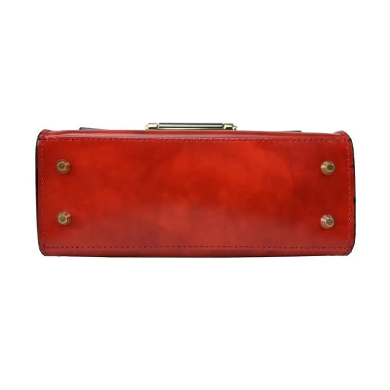 Materiał Skóra cielęca. Szerokość 19 cm. Wysokość 13 cm. Głębokość 8,5 cm. Rączka/Pasek Ze skóry. Zamknięcie Mechanizm zamykający. Waga 0,5 Kg. Pasek skóra