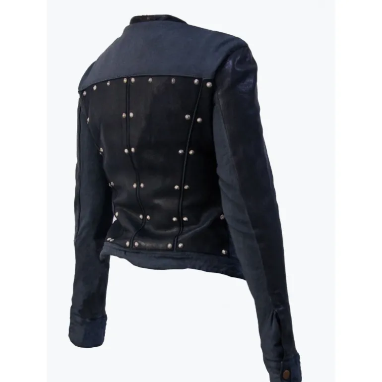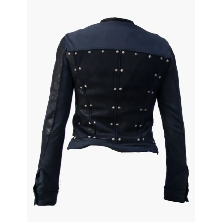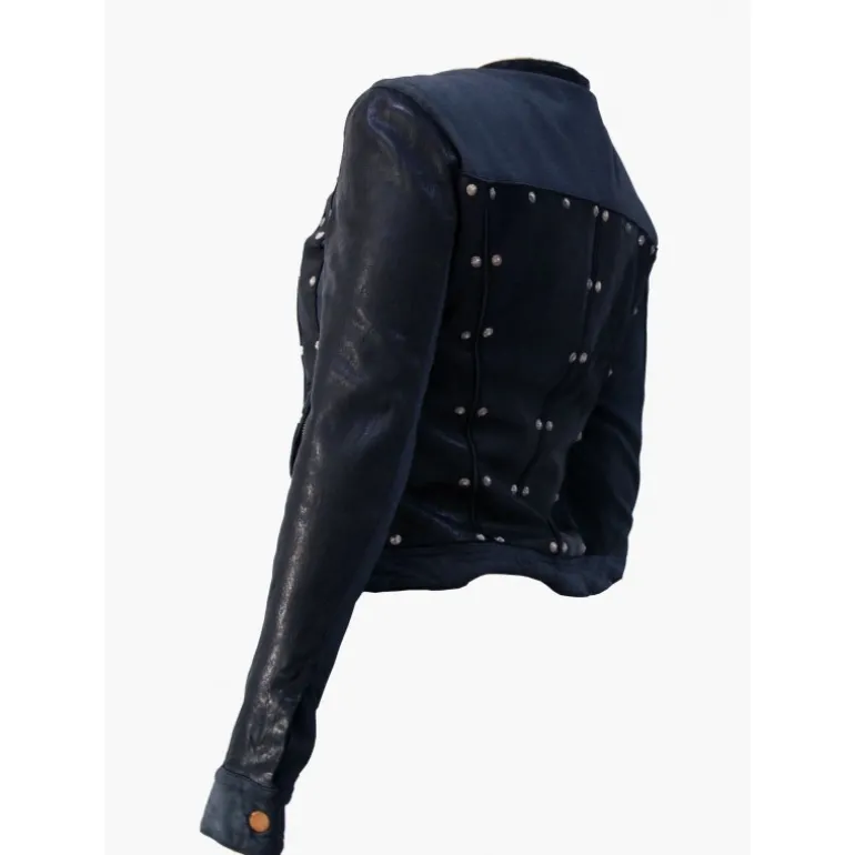 Niezwykle efektowna i przykuwająca spojrzenia kurtka Strisce e Borchie przypadnie do gustu kobietom, które cenią sobie niezależny styl i lubią zwracać na siebie uwagę. Kurtka charakteryzuje się dopasowanym fasonem, zgrabnie podkreślającym talię. Zarówno przód, jak i tył kurtki zdobiony jest licznymi ćwiekami.
