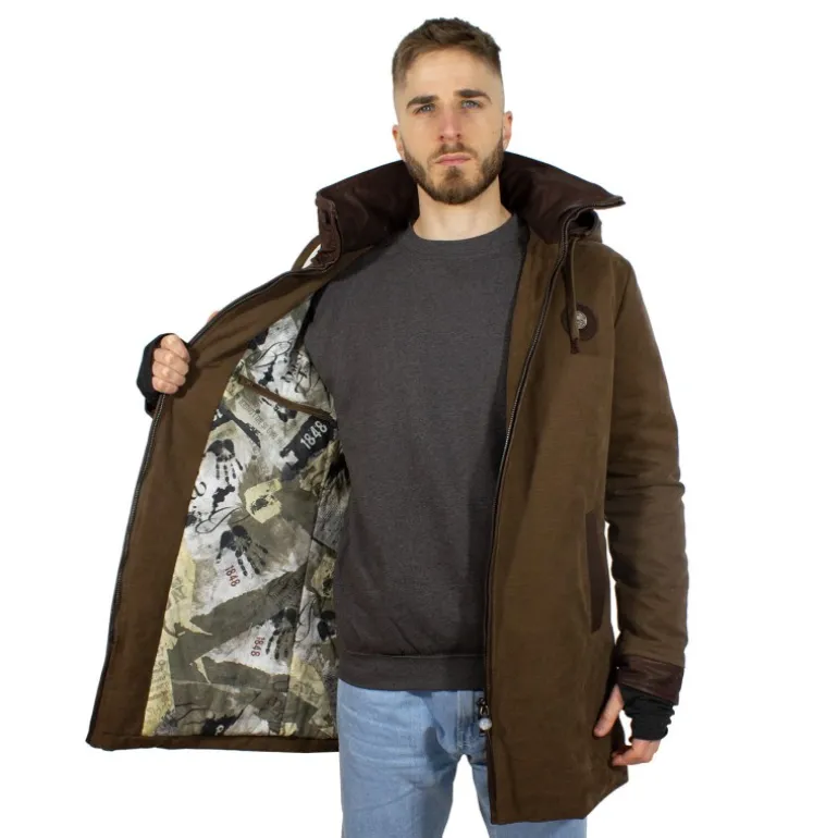 Kurtka męska zimowa „TELA OLONA” została wykonana z bardzo wytrzymałego płótna (tela olona/płótno żaglowe), używanego już w przeszłości, ale też i obecnie w marynarce i w wojsku. Kurtka ta jest idealna na zimę: wytrzymała, odporna na rozdarcia i wodoodporna.
