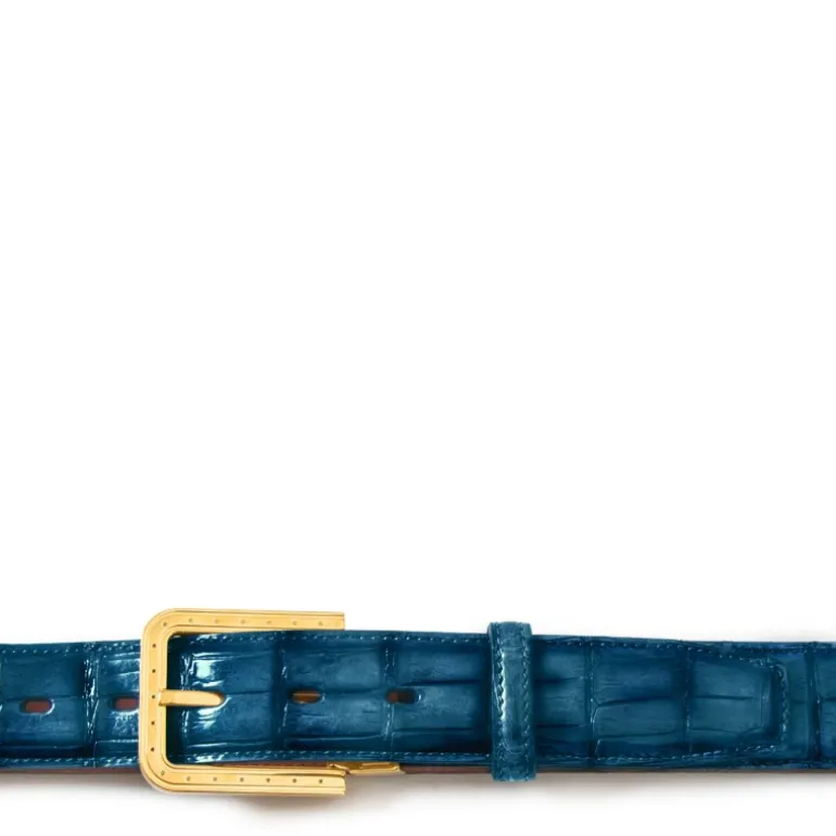 Męski pasek "EGO" ze skóry krokodyla Niebieski