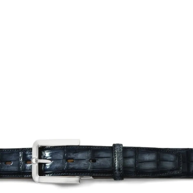 Męski pasek "OLMI" ze skóry krokodyla Granatowy