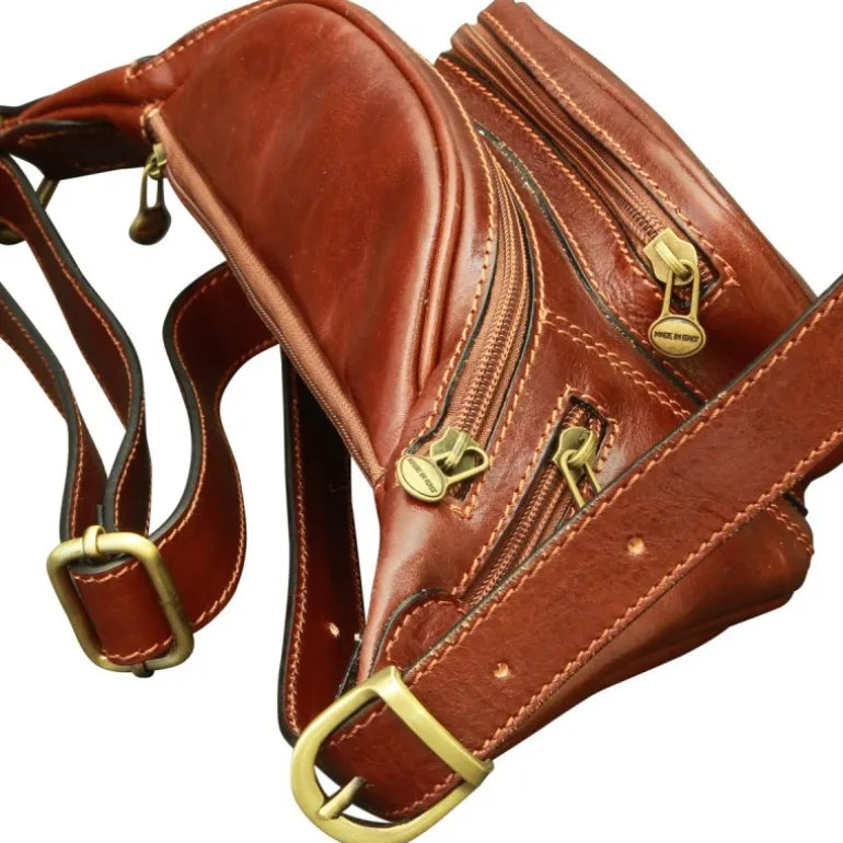 „Gołuchów” Torba saszetka ze skóry 100% made in italy garbowanej roślinnie i ręcznie gąbką