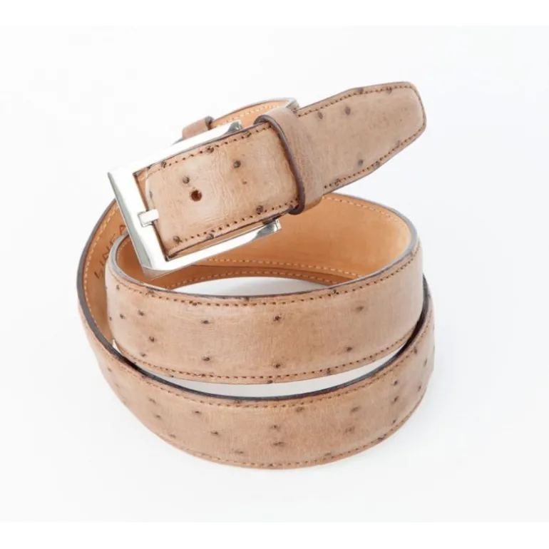 Pasek damski / męski z prawdziwej skóry Strusia, klasyczny, ale jednocześnie sportowy – ładnie prezentuje się z dżinsami.