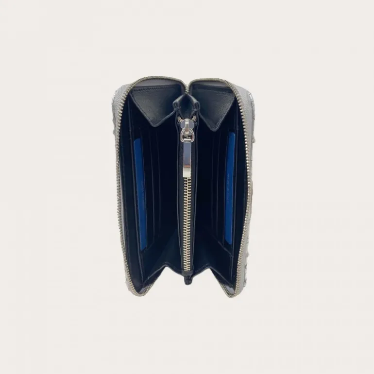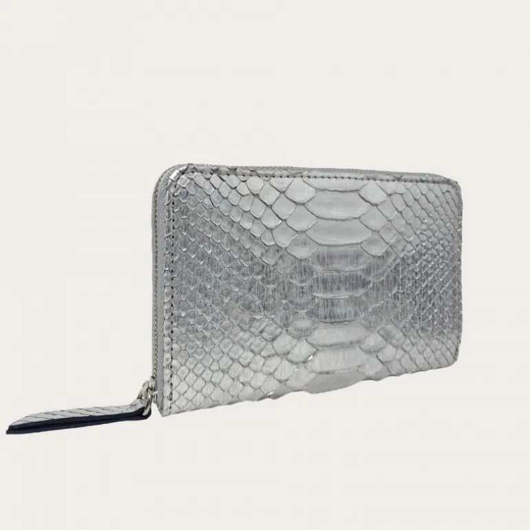 Piękny damski portfel w prawdziwym skóra pytona. Charakter i delikatność łączą się i stapiają w jej kolorym srebrowym. Portfel o wyjątkowym i niepowtarzalnym wyrafinowaniu dzięki rzemieślniczej kolorystyce