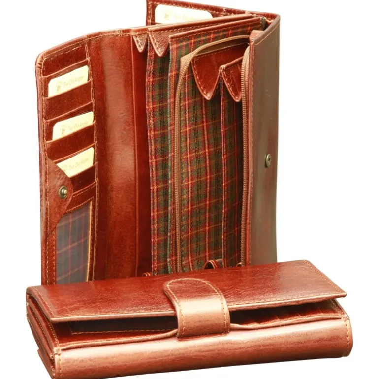 Portfel damski skórzany Augustów z podszewką w szkocką kratę