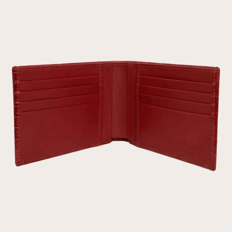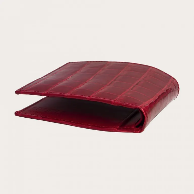Portfel z prawdziwej skóry krokodyla. Elegancki i wygodny kompaktowy portfel z prawdziwej skóry krokodyla, w błyszczącym, cerwonym kolorze, który podkreśla naturalne piękno łusek. Dodatek o wyjątkowej elegancji.