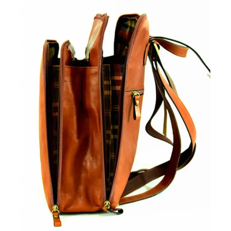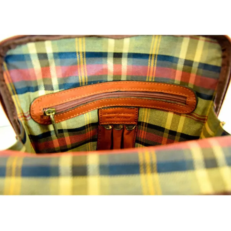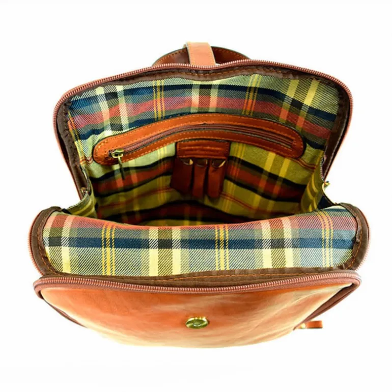 Praktyczny skórzany plecak damski to nieodzowny element w garderobie każdej kobiety, niezastąpiony zarówno w życiu codziennym, jak i w podróży czy po prostu na spacerze po mieście lub na wakacjach. To uroczy pojemnik dla kobiecego wszechświata, zawsze pięknie wzbogaci codzienną stylizacje. Dwie komory z zamkiem otwieranym do samego dołu, pojedynczy uchwyt, podwójne paski, podszewka w szkocką kratę, skóra 100% made in italy garbowana roślinnie i ręcznie gąbką.