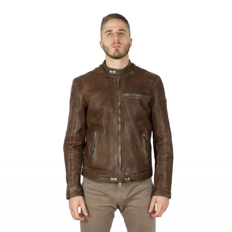 Skórzana kurtka męska została wykonana ze skóry baraniej, garbowanej roślinne. Kurtka ze skóry baraniej, 3 kieszenie zamykane na suwak, suwaki na końcach rękawów. Mandarynkowy kołnierzyk z klipsem zamykającym.