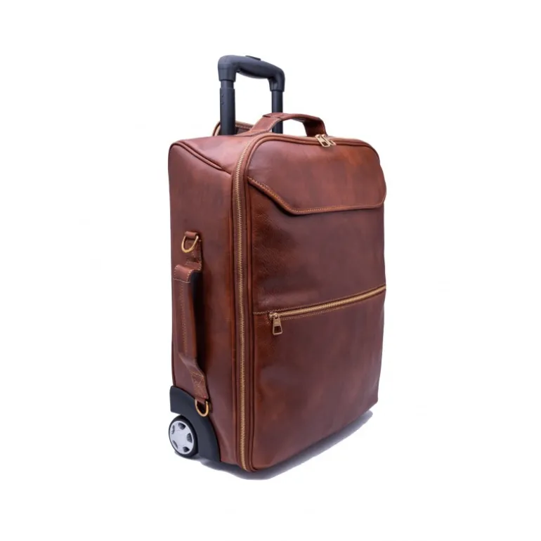 Skórzana torba podróżna trolley 100% made in italy garbowanej roślinnie i ręcznie gąbką