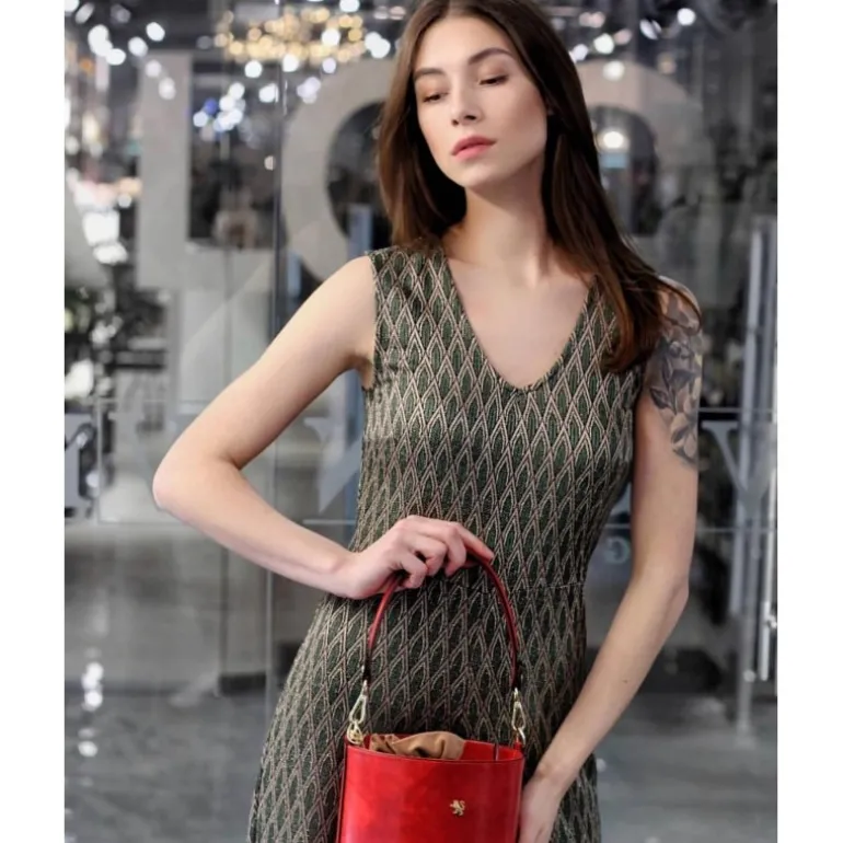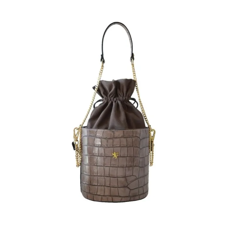Sposób noszenia: ręcznie. Pomieści format A4: nie. Elementy metalowe: złote. Orientacja: pionowa. Wielkość torebki: średnia. Kolekcja: elegancja. Odzaj torebki: listonoszka. Styl: wiadro, miejska. Okazja: do pracy, na zakupach.