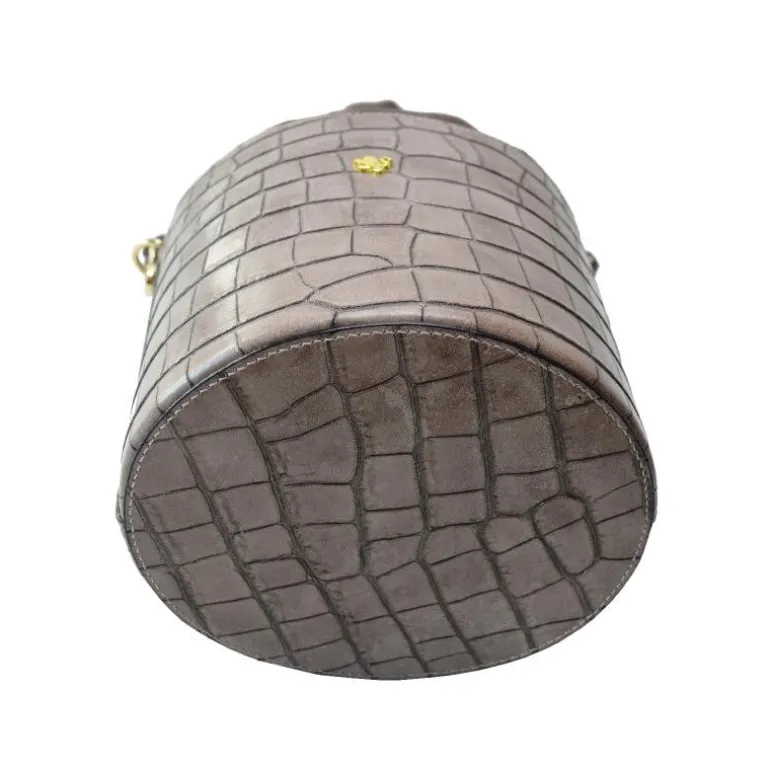 Sztywna damska skórzana torba z krokodylim wzorem. Obok tej oryginalnej torebki nie można przejść obojętnie! Torebka King przyciąga spojrzenia swym niespotykanym, zaokrąglonym kształtem. Pomimo niewielkich wymiarów, jest bardzo pojemna. Posiada jedną przestronną komorę, w której bez trudu pomieści się niezbędny ekwipunek każdej stylowej kobiety. Torebka damska skórzana King K335 występuje w kilku wariantach kolorystycznych, została wykonana z doskonałej jakości włoskiej skóry cielęcej garbowanej roślinnie.