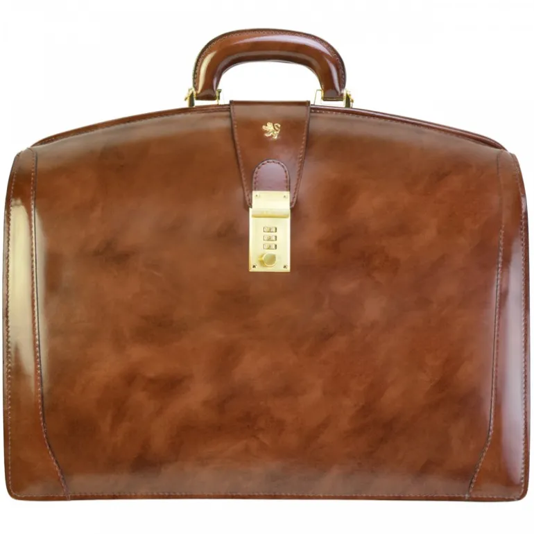 Teczka ta jest naszym hitem sprzedażowym. Została wykonana ze skóry szlachetnej garbowanej roślinnie i farbowanej ręcznie. Wewnątrz trzy komory, kieszeń na zamek, zespół kieszonek na długopisy, telefon i wizytówki. Zamykana na kombinację numeryczną z mosiądzu, szwajcarski mechanizm. Dodatkowo sympatyczne światło, które gaśnie po 30 sekundach po zapaleniu. W wyposażeniu bawełniany worek.
