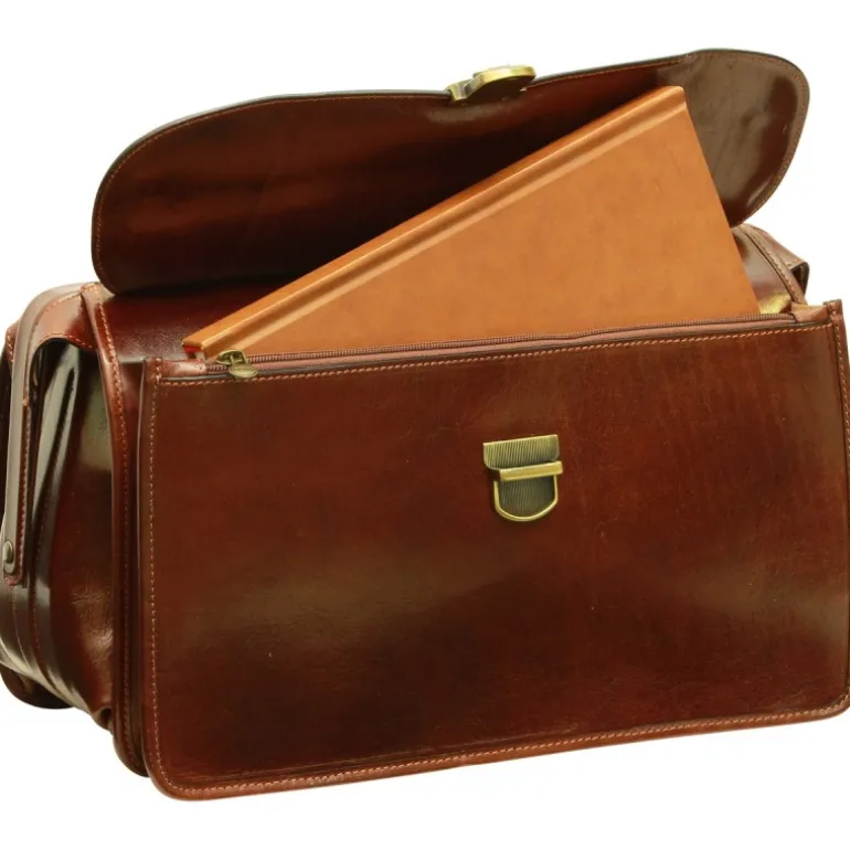 Materiał: skóra naturalna licowa, wysokość cm: 22, szerokość cm: 38, głębokość cm: 18, sposób noszenia: do ręki, pomieści format A4: tak, waga kg: 1,7, długość rączek (cm): 29, elementy metalowe: złoty, orientacja: poziomy, wielkość torba: średnia, kolekcja: elegancki, styl: klasyczny, okazja: do pracy. Zamknięcie Na klucz.