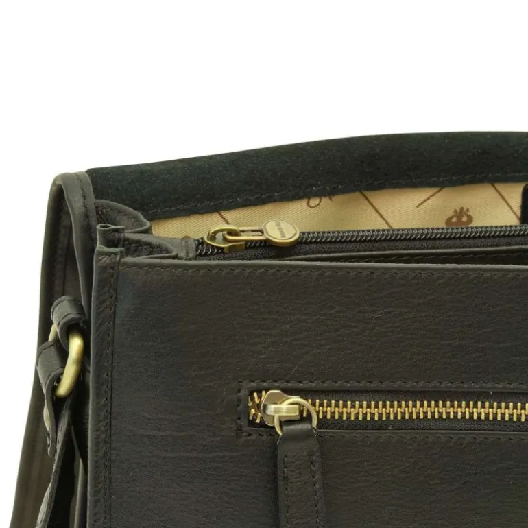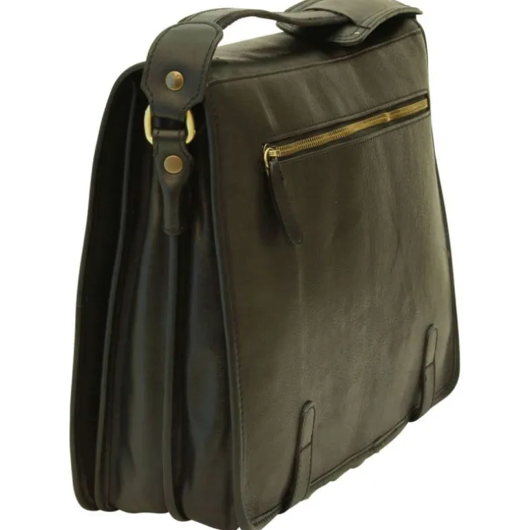Materiał: skóra cielęca garbowana roślinnie. Wysokość cm 30, szerokość cm 40, głębokość cm 10, długość paska na ramię 120 cm, waga kg 1,1. Zamknięcie: z metalowym zamkiem błyskawicznym.