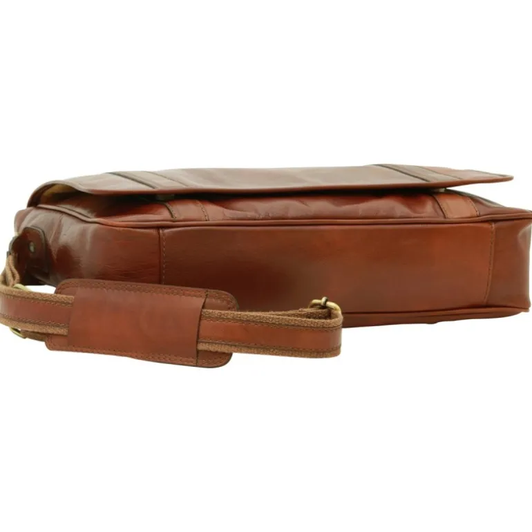 Torba męska na ramię ze skóry cielęcej garbowanej roślinnie. Podszewka bawełniana. Padded compartment for 13″ laptop. Kieszonka wewnętrzna na telefon. Kieszeń zewnętrzna na suwak. Klapka na magnes. Pasek ze skóry i bawełny z możliwością regulowania długości