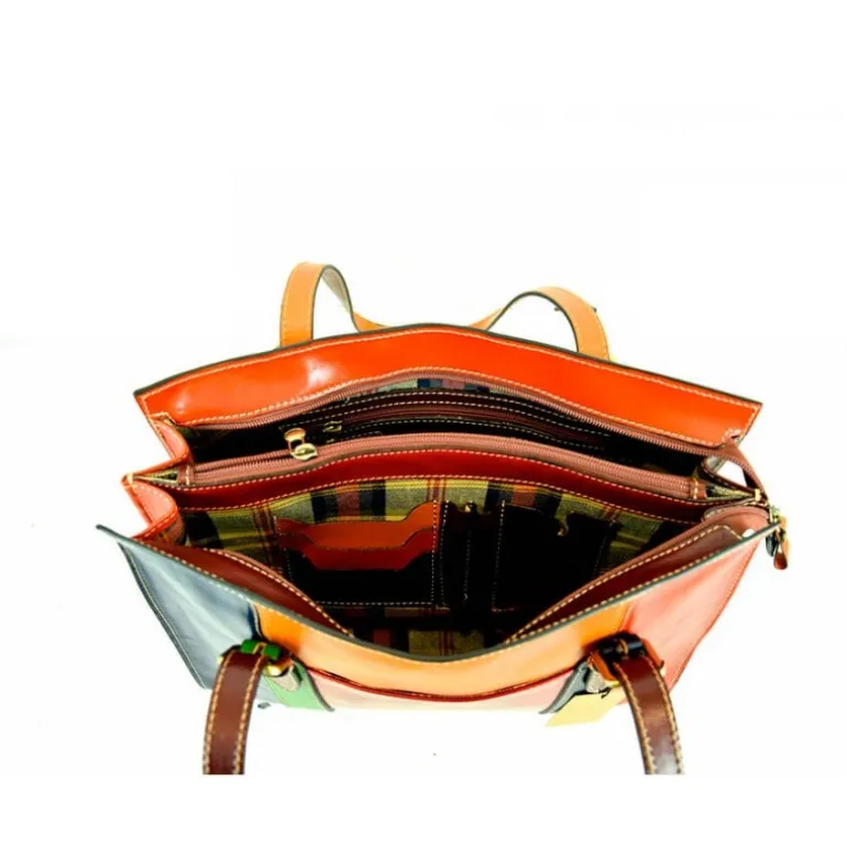 Wymiary: 35,5cm x 27cm x 12cmNietuzinkowa torebka damska skórzana Feniglia Multicolor