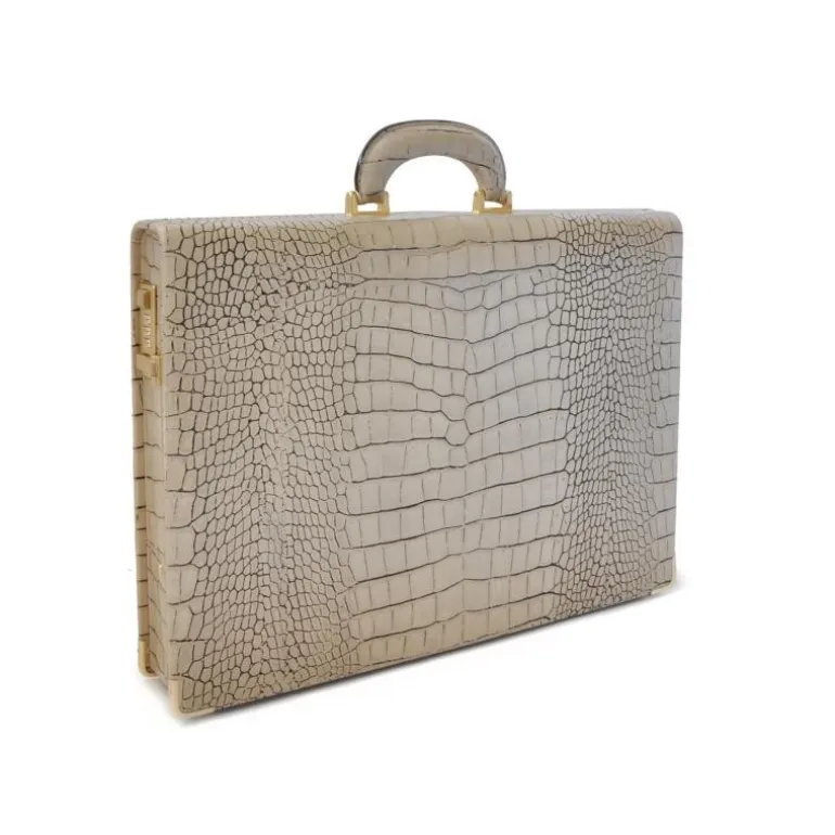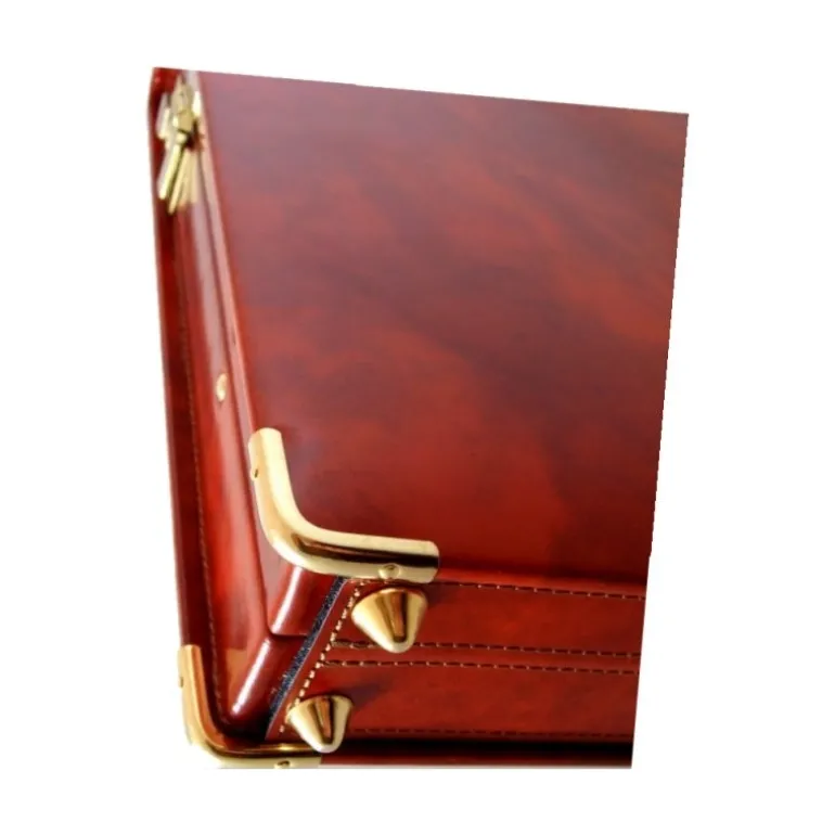 Walizka 24H została wykonana ze skóry szlachetnej garbowanej roślinnie i farbowanej ręcznie. Wewnątrz komora na dokumenty przedzielona, kieszonka na telefon komórkowy, szlufki na długopisy i kieszonka na wizytówki. Zamknięcie na kombinacje numeryczne z mosiądzu umieszczone po bokach, co nadaje walizce elegancki wygląd. W wyposażeniu bawełniany worek.