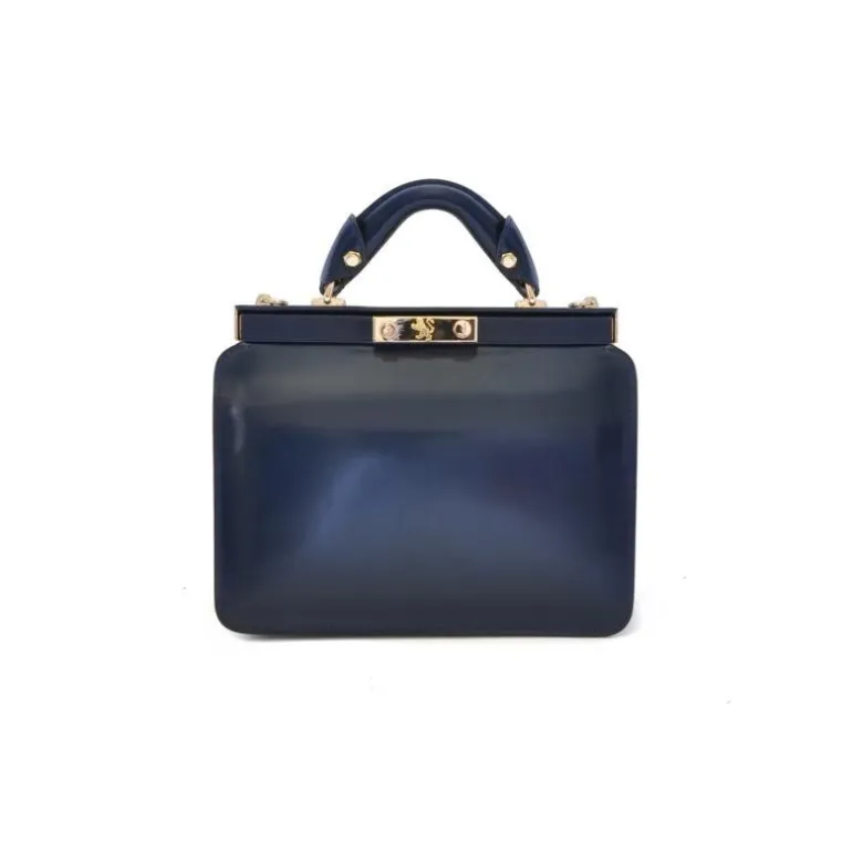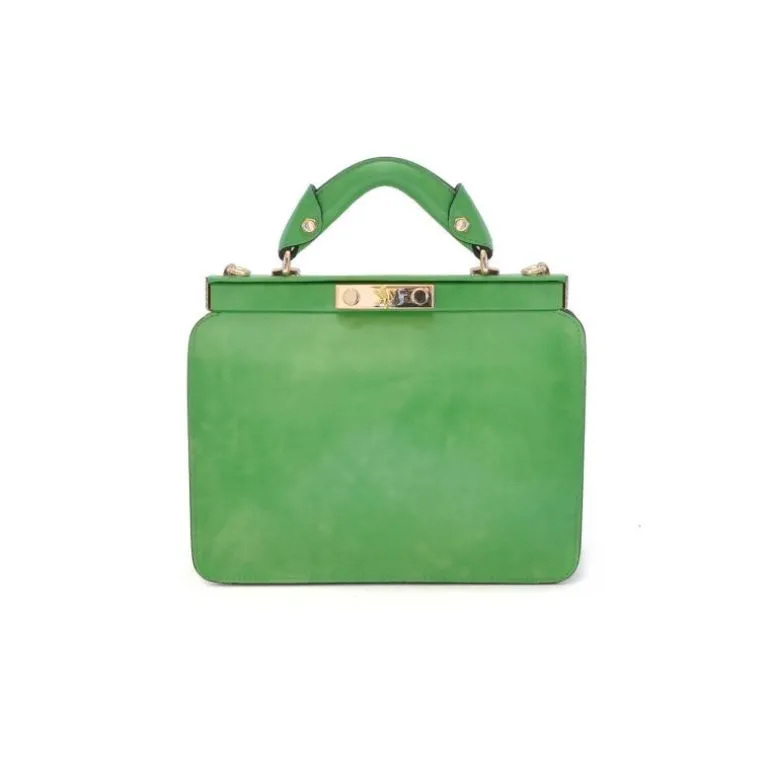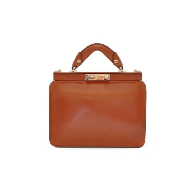 Materiał Skóra cielęca. Szerokość 28 cm. Wysokość 22 cm. Głębokość 8,5 cm. Rączka/Pasek Ze skóry. Części metalowe Mosiądz. Zamknięcie Na automatyczne zatrzaski. Waga kg 0,700.
