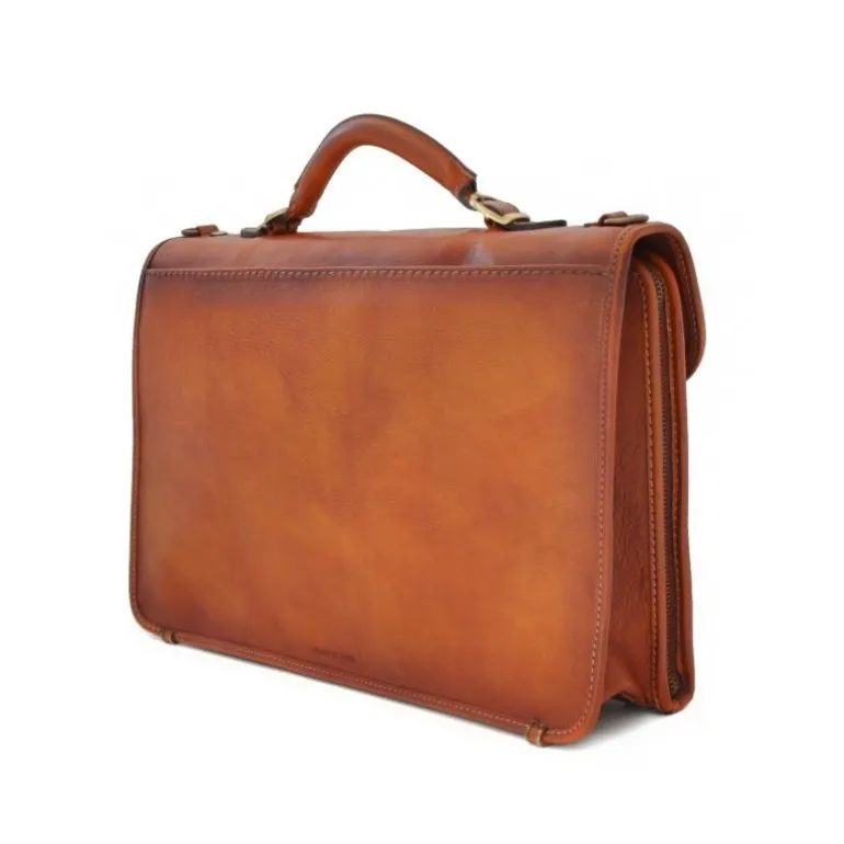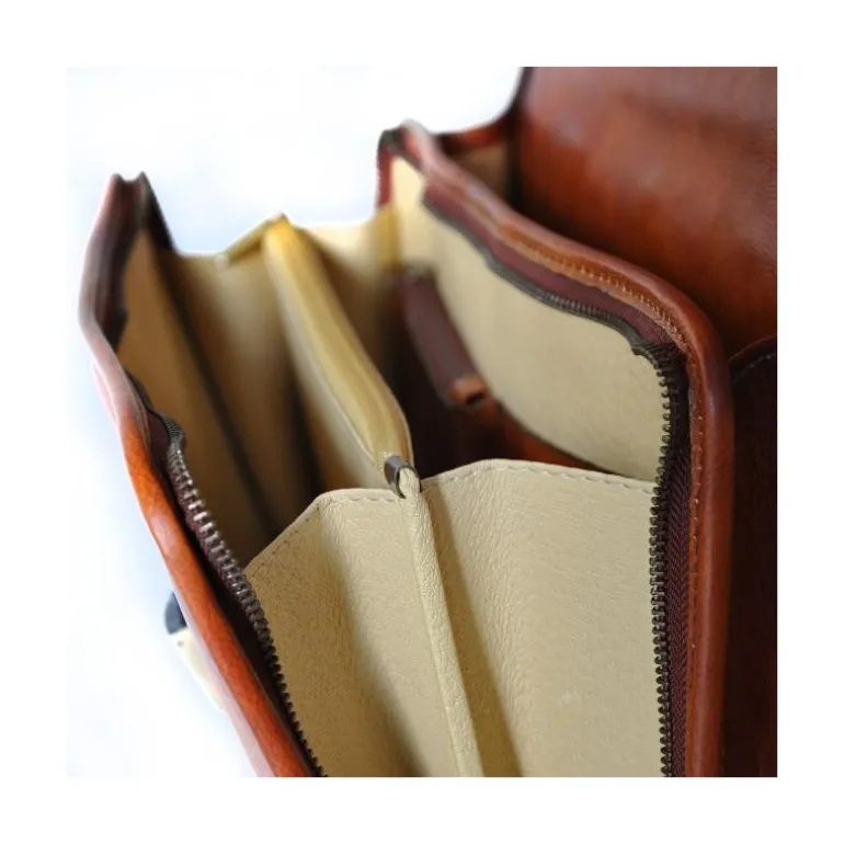 Aktówka ze skóry garbowanej roślinnie, posiada obszerną przestrzeń wewnętrzną z trzema komorami oraz kieszeń zamykaną na zamek błyskawiczny. Na zewnątrz wygodna klapkę zamekana na klucz. Dodatkowo sympatyczne światło, które gaśnie automatycznie po 30 sekundach po zapaleniu. W wyposażeniu bawełniany worek.