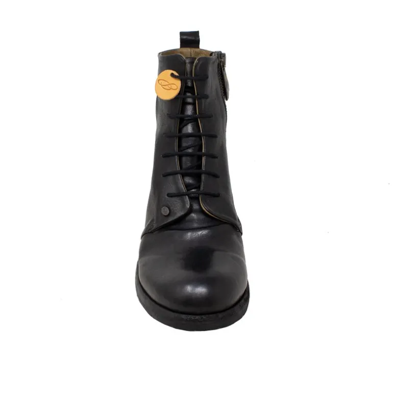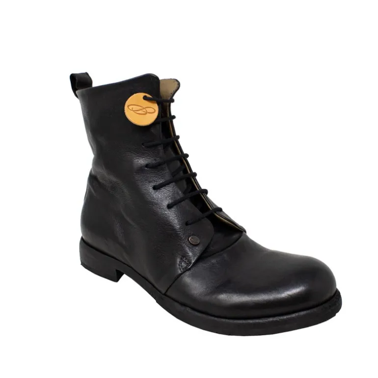 Skórzane botki męskie. Starym stylu butów Dragoni to jeden ze znaków rozpoznawczych włoskiej kreatywności. Wykonany z garbowanej roślinnie skóry bawole. Zanurza się w kąpielach o naturalnym kolorze pozyskiwanym z tanin (kory drzew). Następnie jest prany w specjalnych maszynach z kamieniami, zabieg ten nadaje butowi miękkość. Suszenie odbywa się naturalnie. Po wyschnięciu nasi rzemieślnicy nadają ostateczny szlif za pomocą pędzli i gąbek, dzięki czemu but jest wyjątkowy i niepowtarzalny. Wykonany ze skóry cielęcej z naturalnym garbnikiem toskańskim.Cechy: ekstremalny komfort, miękkość zarówno skóry jak i podeszwy.