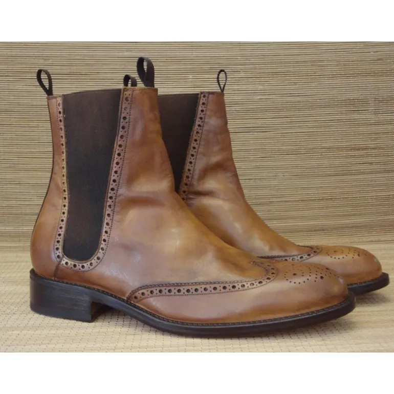 Opis : Przepiękne wysokie buty męskie, bardzo modne, w stylu VINTAGE. Wykonane ze szlachetnej SKÓRY CIELĘCEJ POSTARZONEJ RĘCZNIE – efekt Znoszenia. Wszelkie niedoskonałości skóry, pocieniowanie koloru oraz jego niejednolistość, a także efekt pomięcia są niezwykle charakterystyczne dla STYLU VINTAGE. Jest to produkt ekskluzywny, dla miłośników tego wspaniałego i wyszukanego stylu.