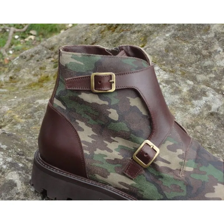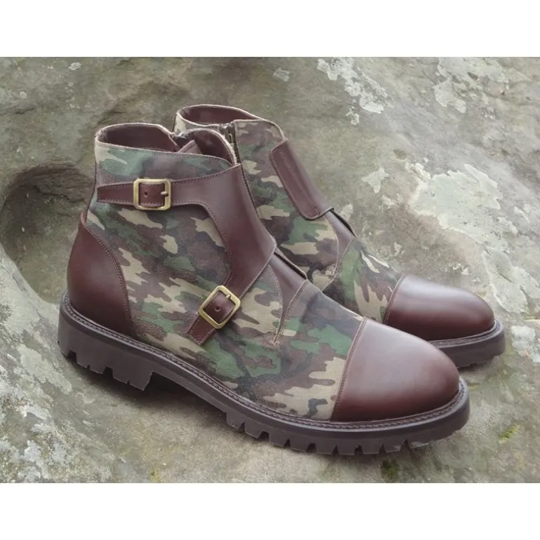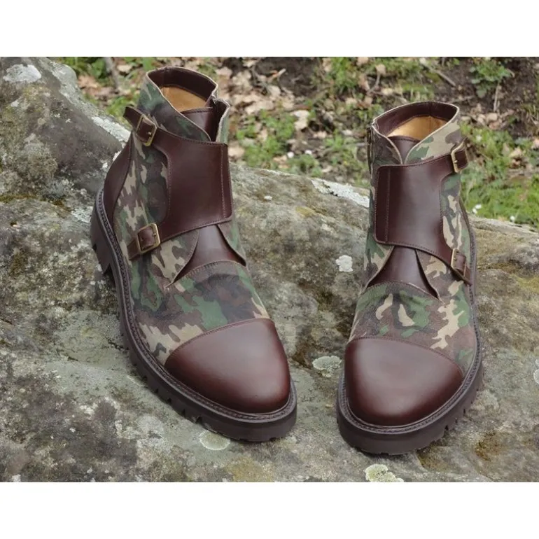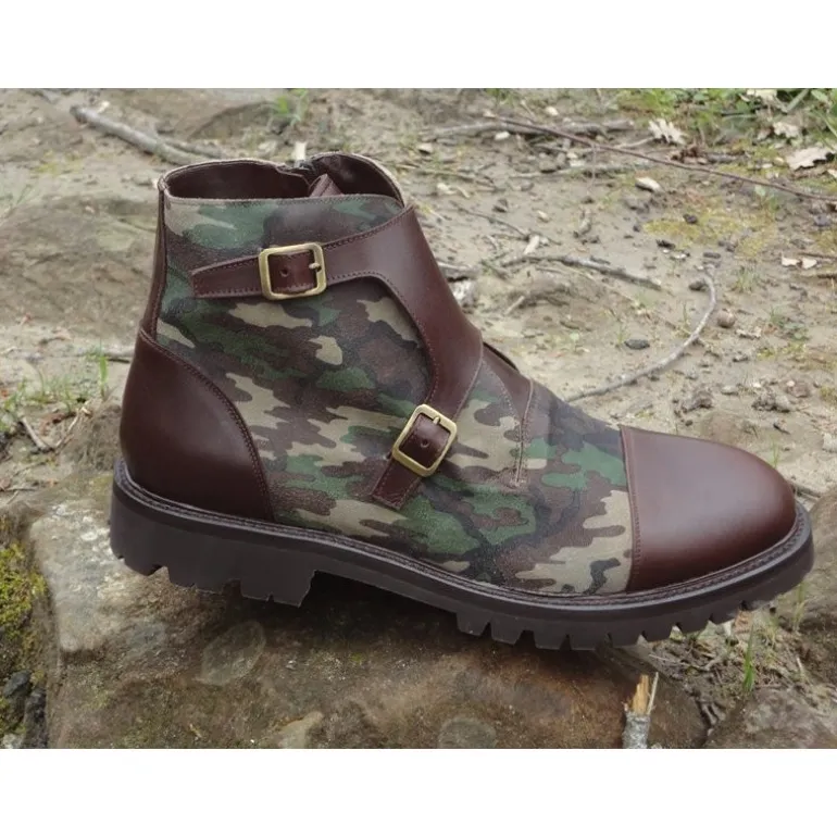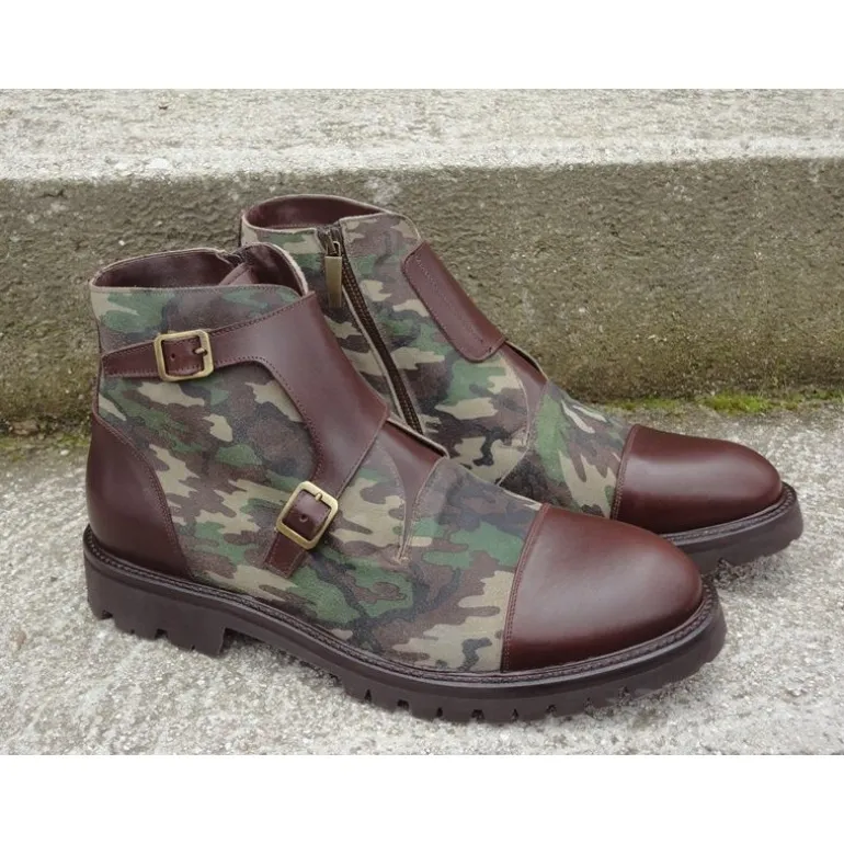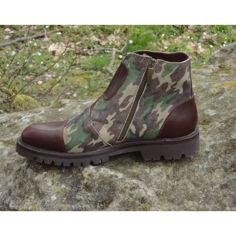 Opis : Modello di tendenza realizzato con pellame gaucho, riporto pelle camouflage e suole Vibram TANK. Il leggendario Carrarmato vera icona evergreen del design internazionale.