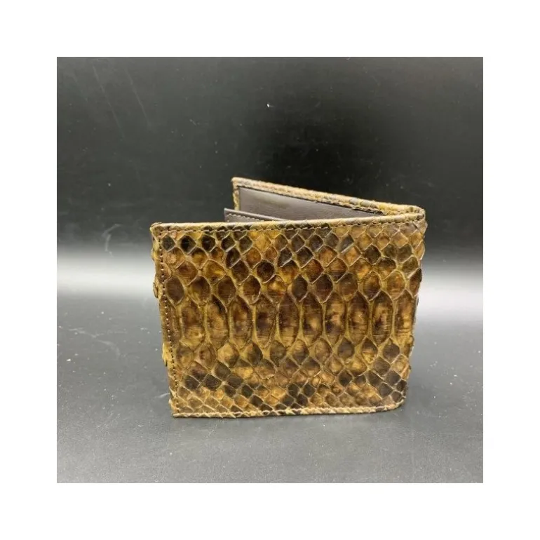 Brązowy portfel z prawdziwej skóry pytona w całości wykonany ręcznie. Bardzo wygodny i praktyczny, idealny do marynarki, można go nosić także w kieszeni spodni. Portfel został wykonany ręcznie z materiałów najwyższej jakości.