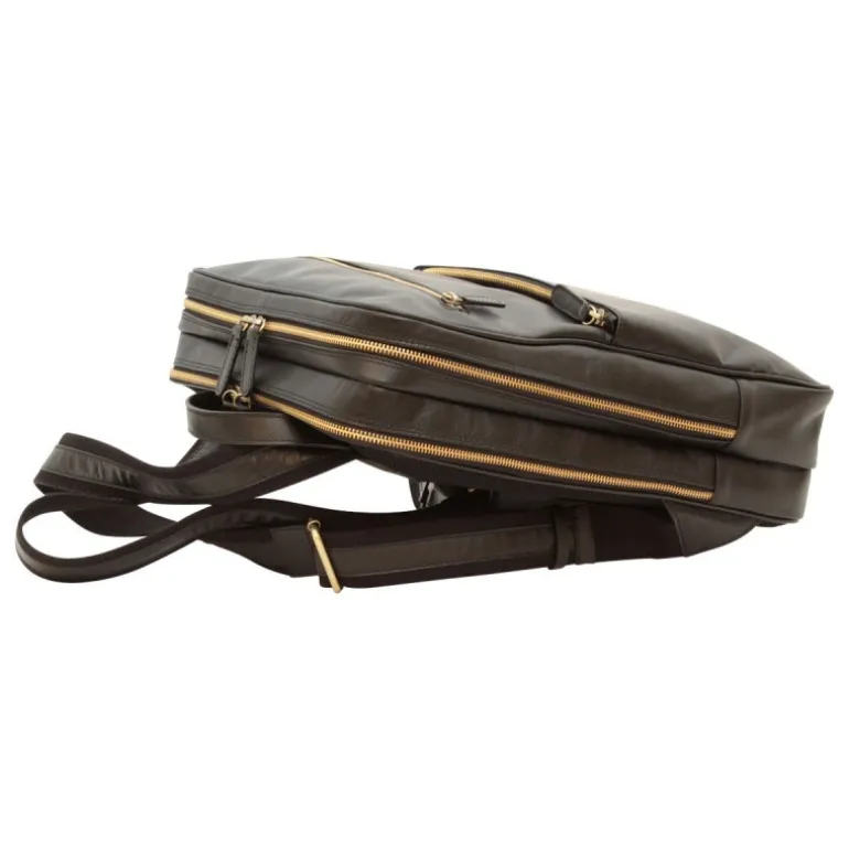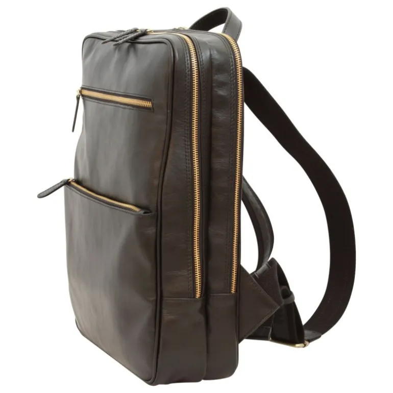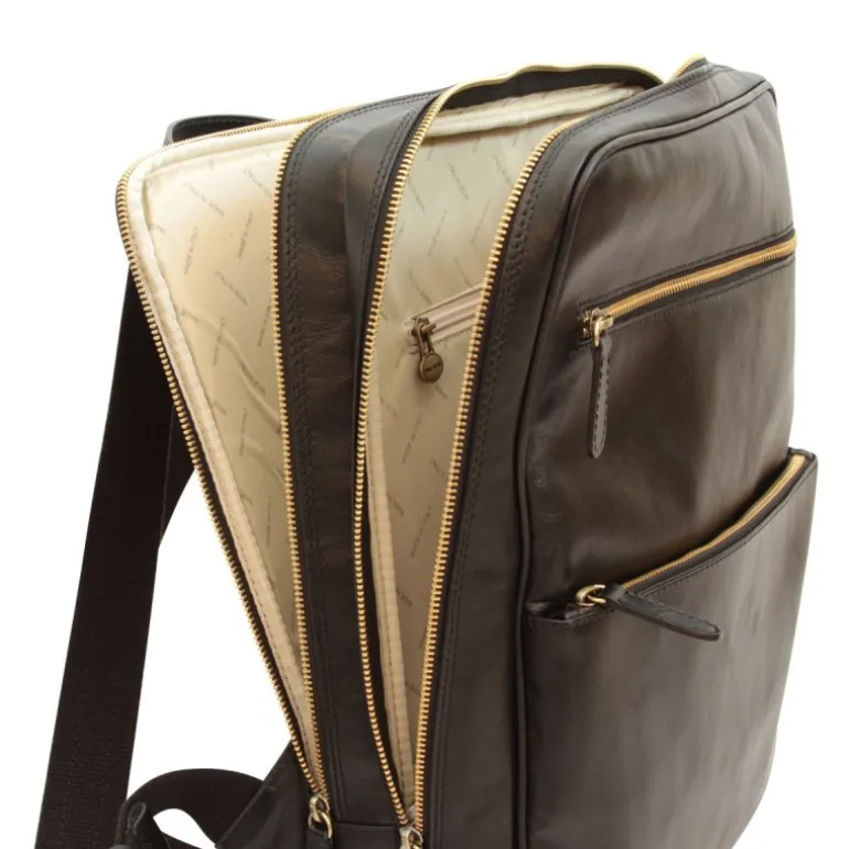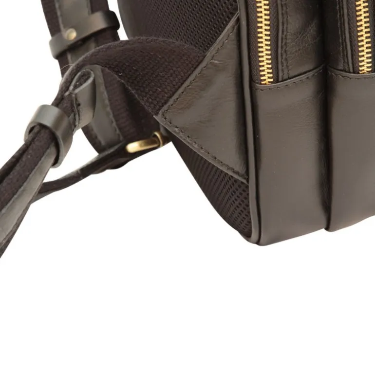Casualowy plecak na laptopa z miękkiej skóry cielęcej garbowanej roślinnie z miejscem na komputer. Podszewka bawełniana. Siateczka na plecach. Duża komora główna. Przegroda na komputer 13″. Kieszeń z przodu. W środku kieszonka na telefon. Suwak zewnętrzny mosiądz. Paski ze skóry i bawełny z możliwością regulowania długości. Wymiary: 30x39x11 cm. Waga: 1,200 kg