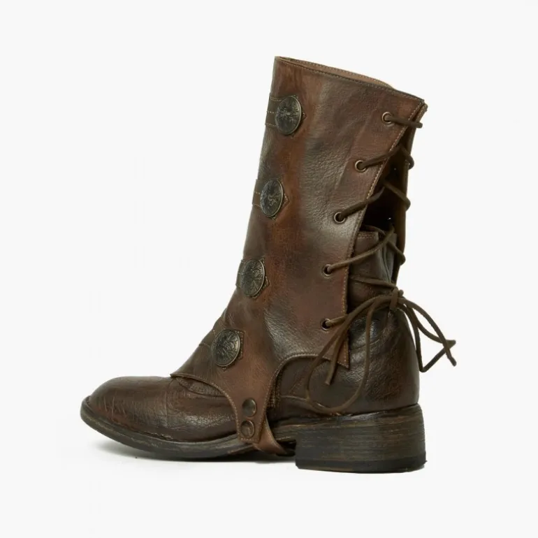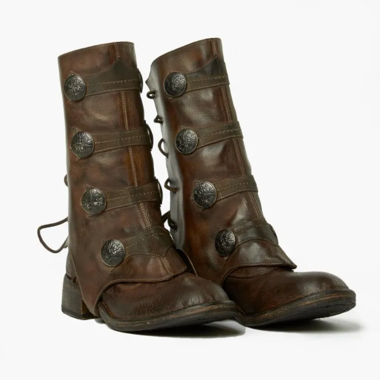 Z tyłu getry są sznurowane sznurówkami z prawdziwej skóry.