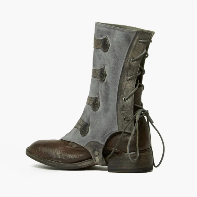 Getry na obuwie ze skóry i płótna Ghette Canvas Bottoni w kolorze szarym