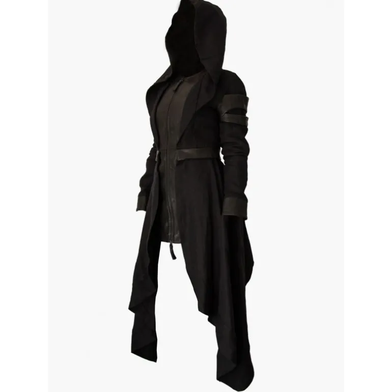 Kurtka skórzana damska Assassin’s Creed jest wyjątkowym produktem, gdyż charakteryzuje się niecodziennym designem oraz wysoką jakością materiałów. Model ten został uszyty przez rzemieślników z połączenia lnu i skóry. Kurtka damska Assassin’s Creed dostępna jest tylko w czarnym kolorze. Model Assassin’s Creed charakteryzuje się niepowtarzalnym stylem, asymetrycznym krojem i bardzo kobiecym fasonem. Produkt ten posiada także lniany kaptur oraz zapięcie na zamek. Jest to lekka i bardzo wygodna kurtka, idealna na przejściowe pory roku.