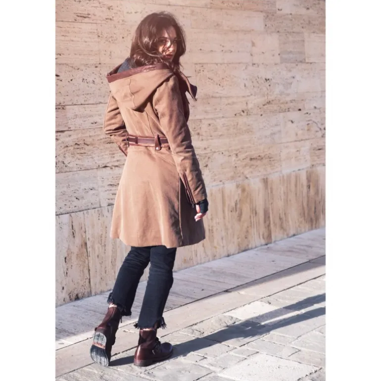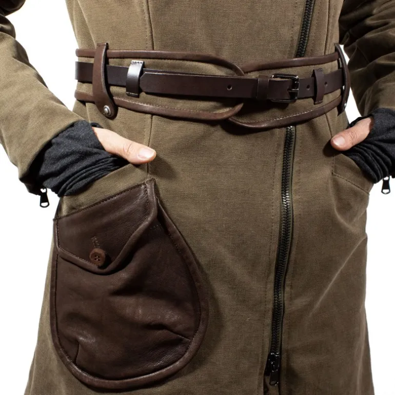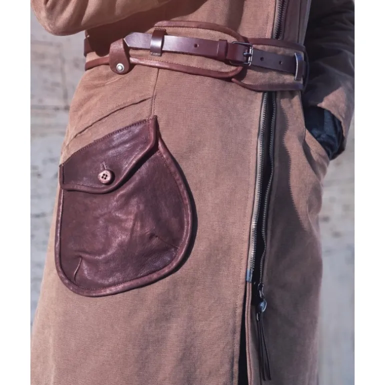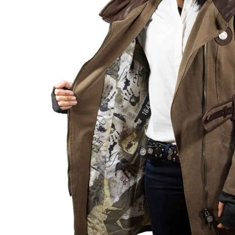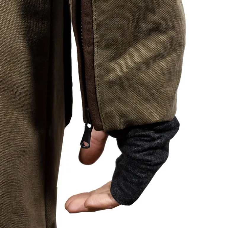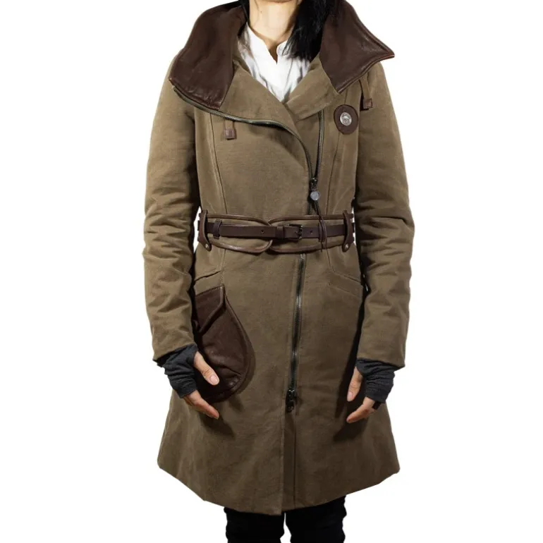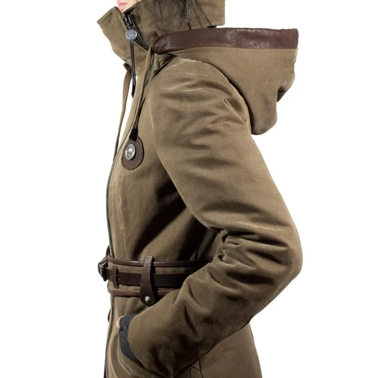 Kurtka zimowa damska. Została wykonana z bardzo wytrzymałego płótna (tela olona/płótno żaglowe), używanego już w przeszłości, ale też i obecnie w marynarce i w wojsku. Kurtka ta jest idealna na zimę: wytrzymała, odporna na rozdarcia i wodoodporna.