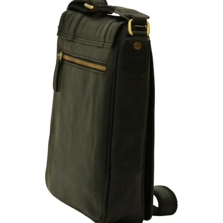 Listonoszka skórzana męska „Grudziądz” podszewka bawełniana, wyściełana komora na iPada, kieszonka wewnętrzna na telefon, kieszeń zewnętrzna na suwak, klapka na magnes, pasek ze skóry i bawełny z możliwością regulowania długości. Wymiary: 23x29x6 cm Waga: 0,750 kg