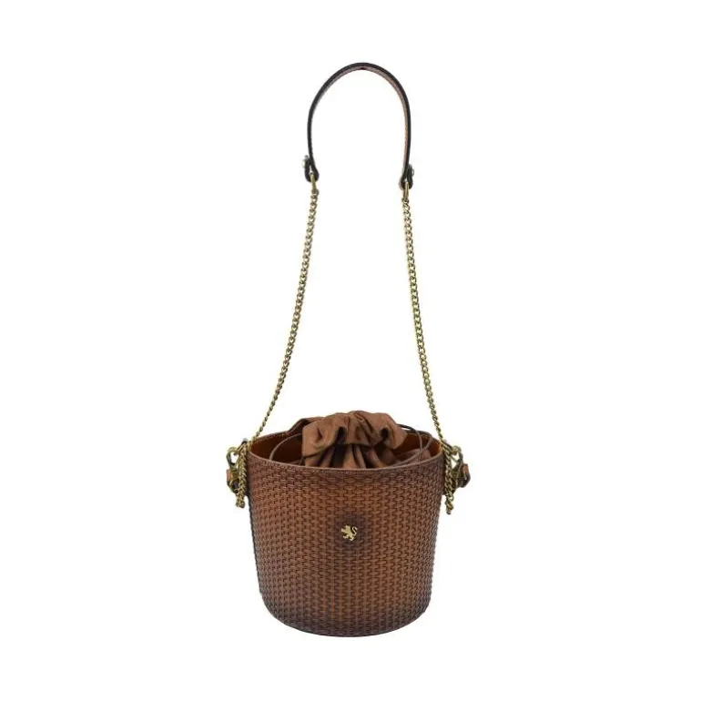 Materiał Skóra cielęca garbowana roślinnie. Szerokość cm 20. Wysokość cm 19. Głębokość cm 17. Rączka Metalowy łańcuszek. Długość dłuższego łańcuszka: 120 cm. Waga kg 0,5