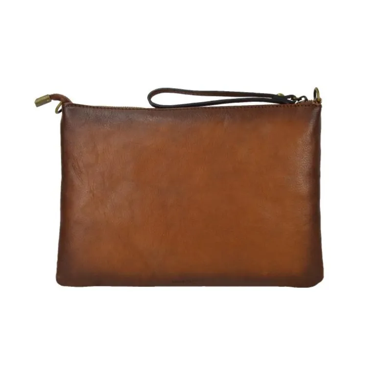 Materiał: skóra cielęca garbowana roślinnie. Wysokość cm 21, szerokość cm 30, głębokość cm 4, długość paska na ramię 120 cm, waga kg 0,4. Rączka ze skóry, długość rączek cm 20. Sposób noszenia: ręcznie, pomieści format A4: nie, elementy metalowe: złote, orientacja: poziomy, wielkość torebki: Mała, kolekcja: elegancki, odzaj torebki: Listonoszka, styl: o pudełkowym kroju, miejska, okazja: na zo dzień na wieczorem.