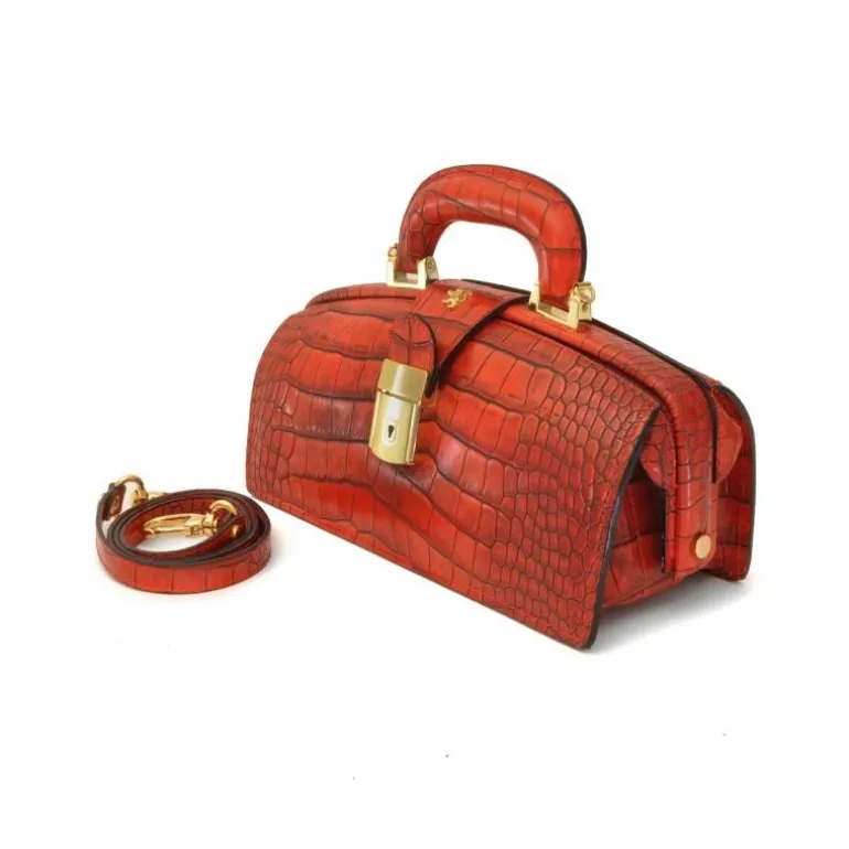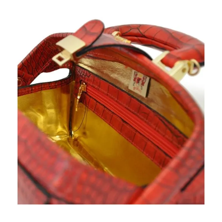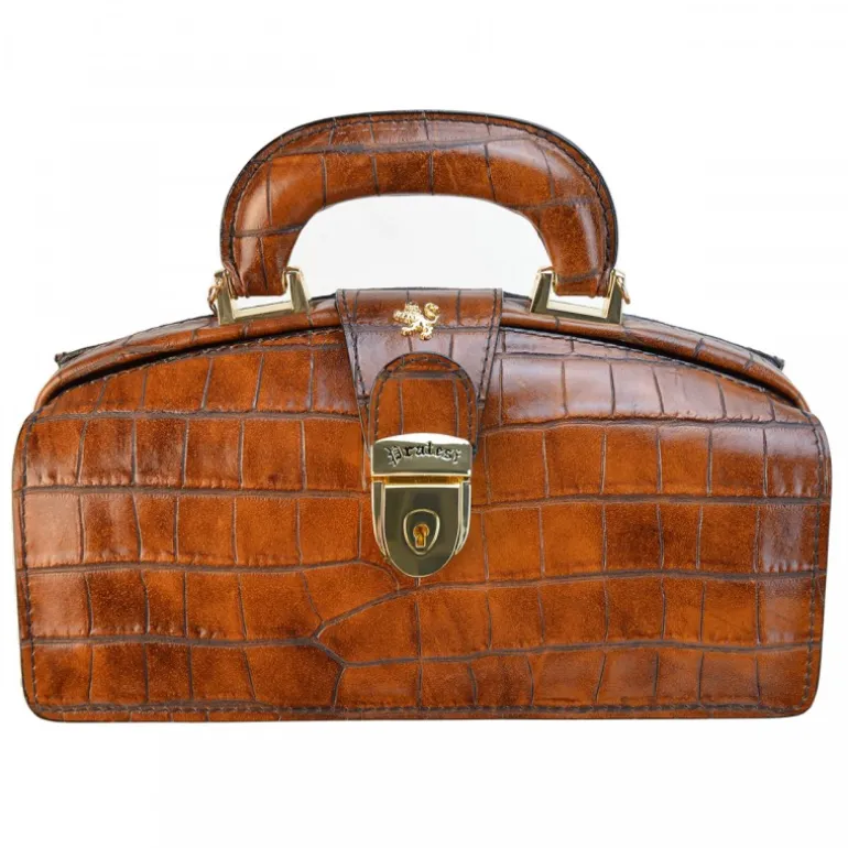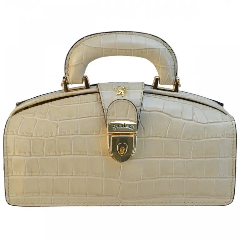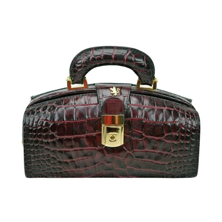 Mała torebka skórzana z tłoczonym wzorem. Lady Brunelleschi to florencki wyrób rzemieślniczy wysokiej jakości. Model ten został wykonany z naturalnie garbowanej skóry cielęcej. Torebka Lady Brunelleschi posiada zamknięcie na zamek oraz oświetlenie LED wewnątrz komory. Dodatkowo wewnątrz znajduje się kieszeń zamykana na zamek. Torebka Lady Brunelleschi to model posiadający następujące wymiary: 27,5 cm szerokości, 15 cm wysokości oraz 11,5 cm głębokości. Torebka posiada wygodną rączkę pokrytą skórą oraz skórzany pasek.