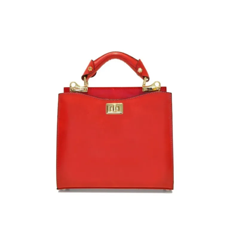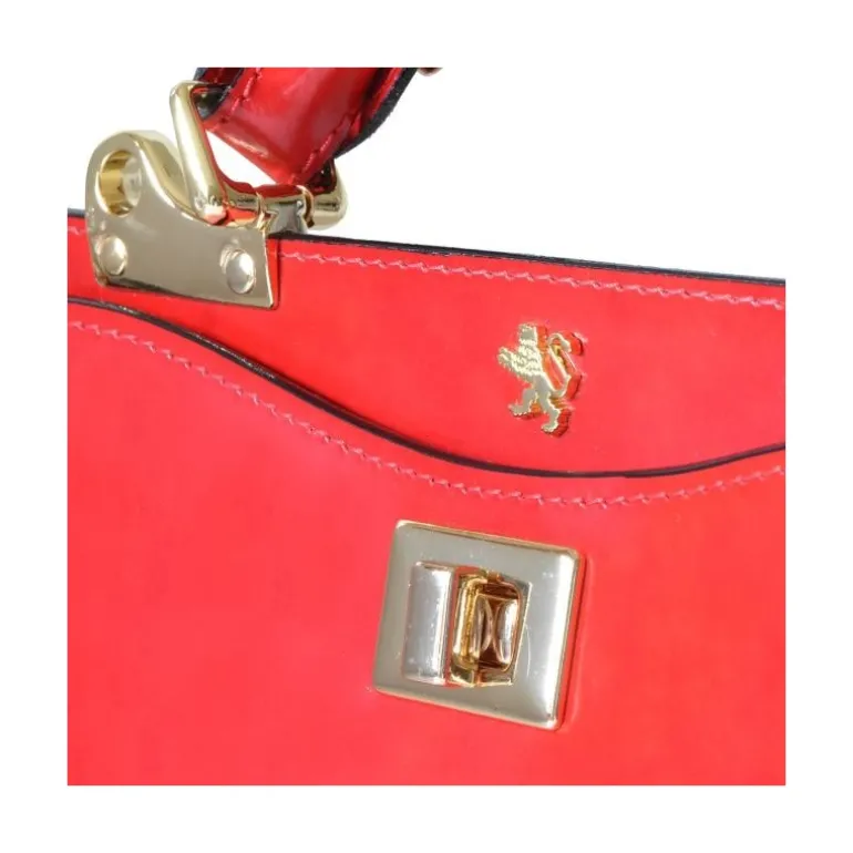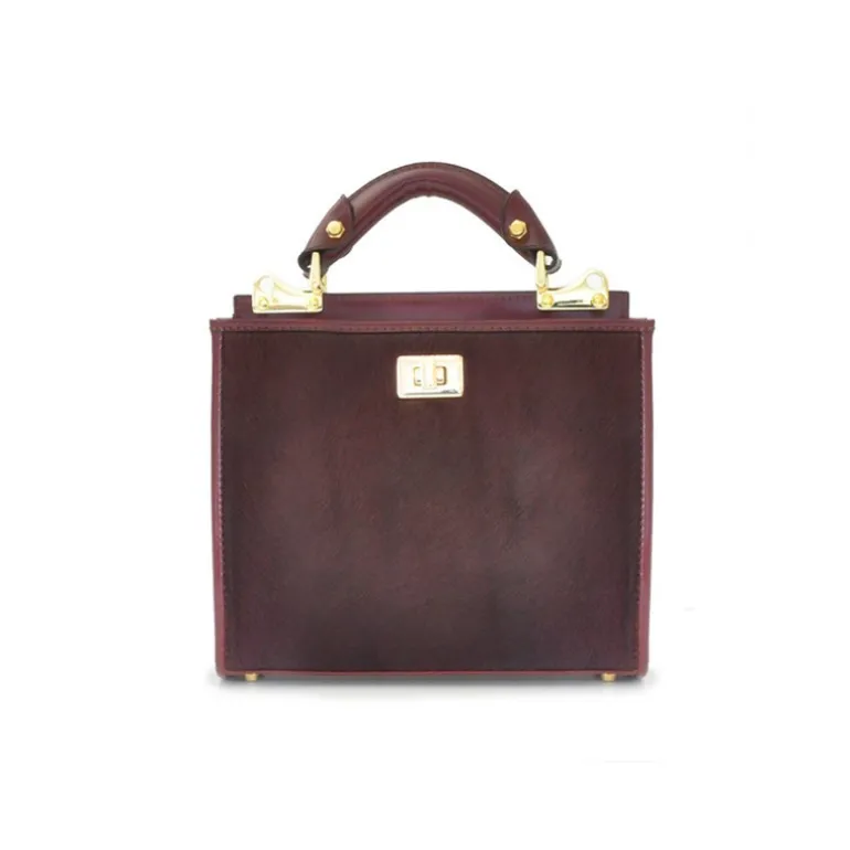 Materiał Skóra cielęca. Szerokość 26 cm. Wysokość 25 cm. Głębokość 8 cm. Rączka/Pasek Ze skóry. Zamknięcie Na przekrętkę. Waga 1,2 Kg