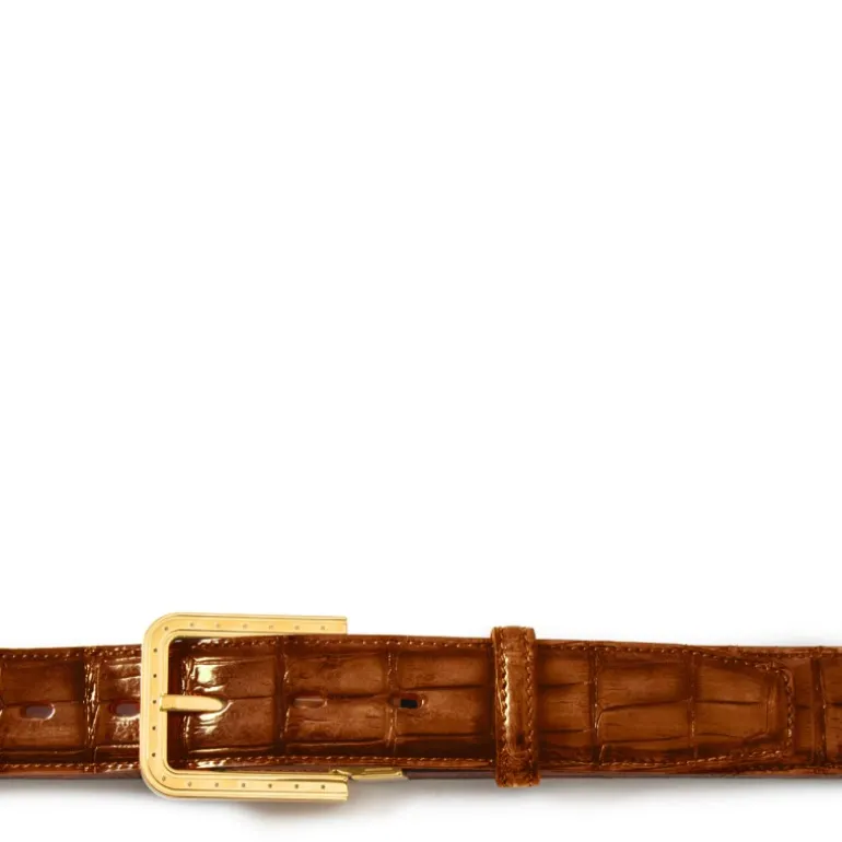 Męski pasek "EGO" ze skóry krokodyla Koniak
