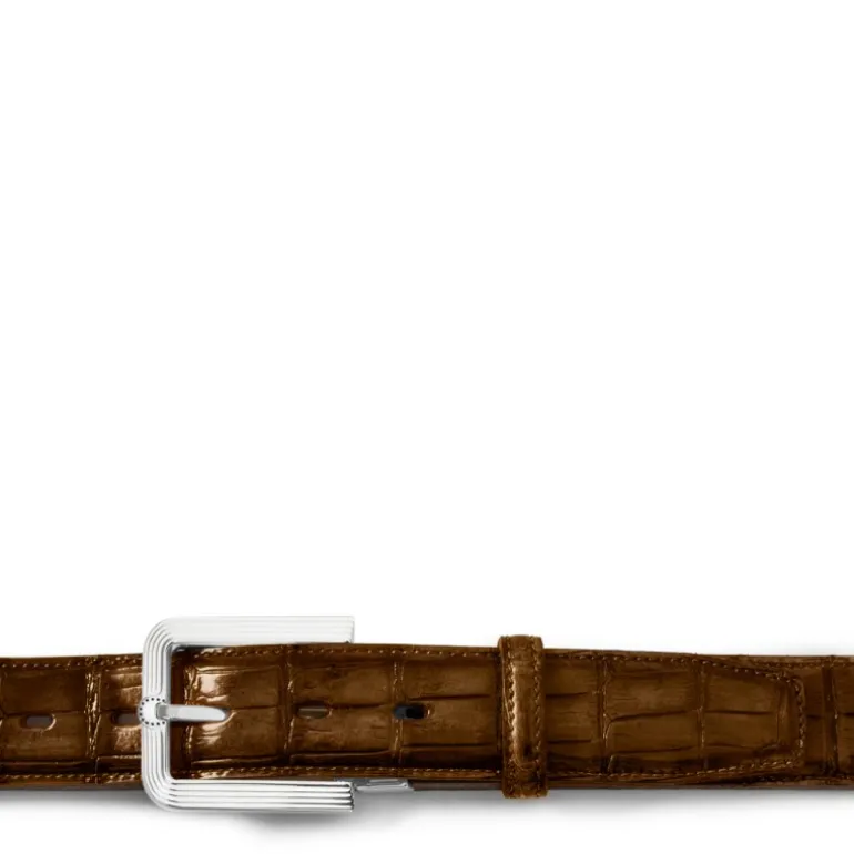 Męski pasek "OLMI" ze skóry krokodyla Koniak