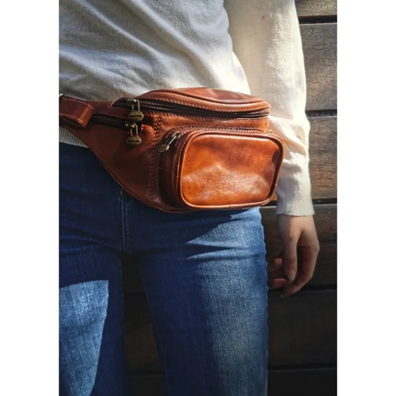 „Gołuchów” Torba saszetka ze skóry 100% made in italy garbowanej roślinnie i ręcznie gąbką