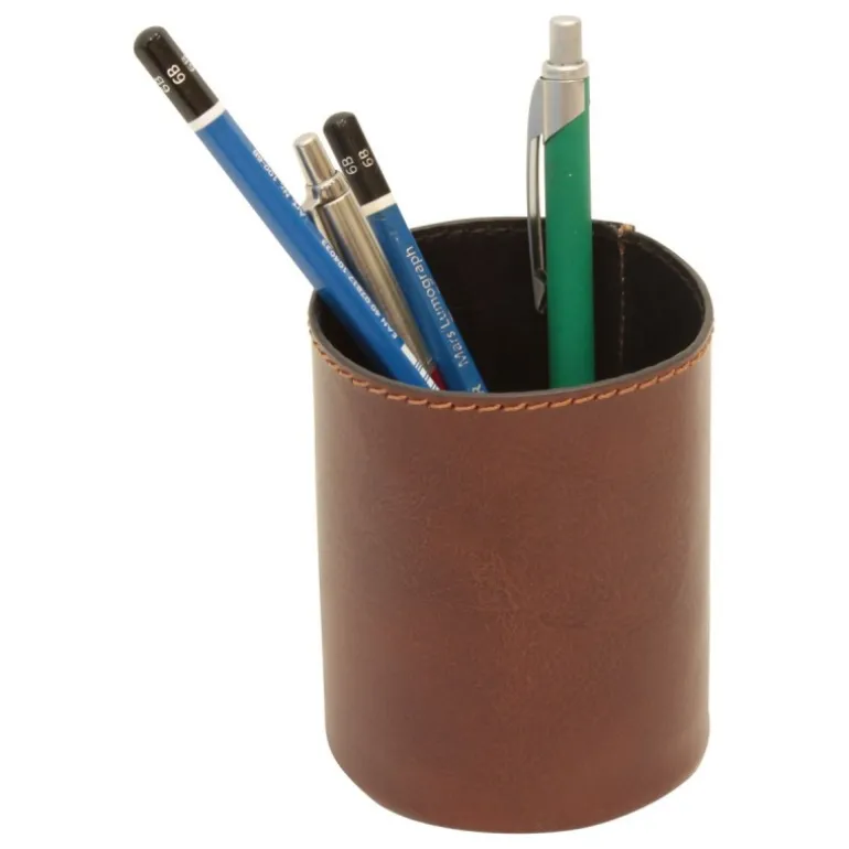 Pojemnik na długopisy z licowej skóry cielęcej z serii Warszawa to przykład prostoty i elegancji, które to połączenie zwycięstwa. Pojemnik na biurko ma 10 cm wysokości i 8 cm szerokości.