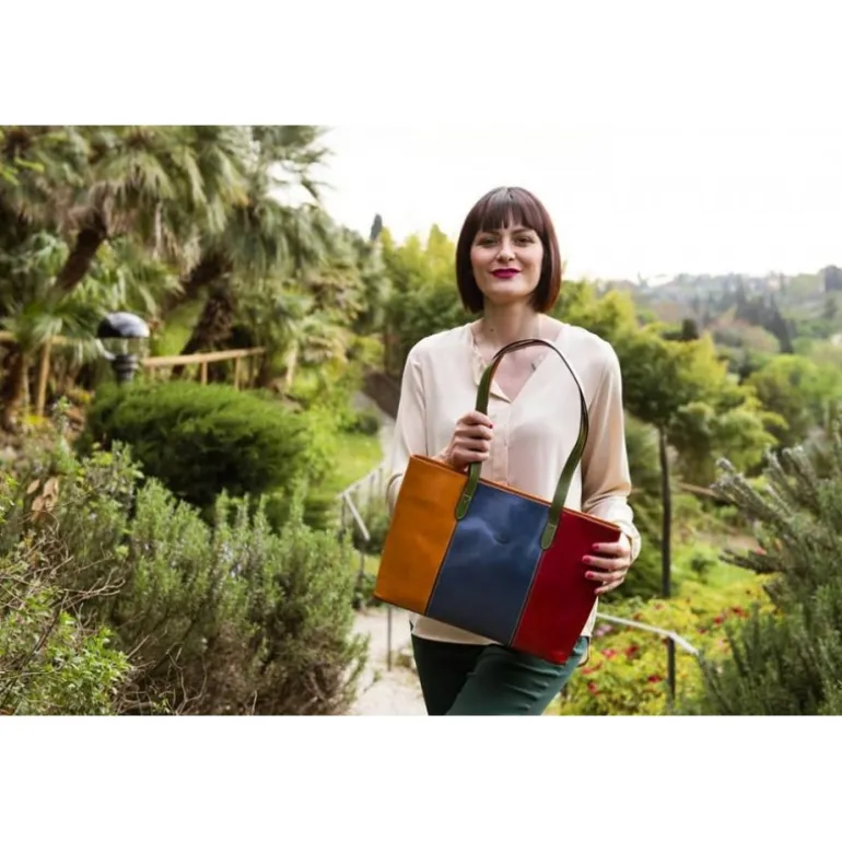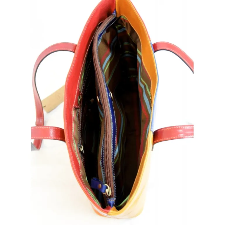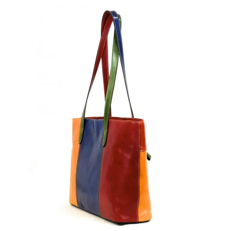 Przepiękna torebka damska skórzana. Niecodzienna torebka damska skórzana Corte dei Butteri Multicolor posiada podwójny pasek oraz podwójne komory. Wnętrze torby jest bardzo dobrze zorganizowane oraz ozdobione stylową podszewką w szkocką kratę. Zamykana jest na zamek błyskawiczny. Model Corte dei Butteri Multicolor został wykonany ze skóry w kilku kolorach. Dzięki temu to bardzo elegancki i wyjątkowy produkt, który charakteryzuje także wysoka jakość. Torebka ta ma również okucia z mosiądzu oraz niklowane.Ppodwójny pasek, podwójna komora, zamykana na zamek błyskawiczny, przestrzeń wewnątrz odpowiednio zorganizowana, okucia z postarzonego i szczotkowanego mosiądzu w kolorze brązowym i w ciemnym brązie, okucia niklowane multicolor, podszewka w szkocką kratę, ze skóry 100% made in italy garbowanej roślinnie i ręcznie gąbką. Wymiary: 35X9X26