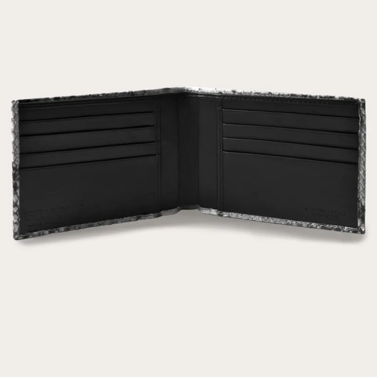 Roccia portfel z prawdziwej skóry pytona, w całości wykonany ręcznie. Wygodna i praktyczna zarówno do marynarki, jak i do noszenia w kieszeni spodni. Całość wykonana ręcznie z wysokiej jakości materiałów. Luksusowy i elegancki przedmiot. Zielony bufor w cieniu błota.