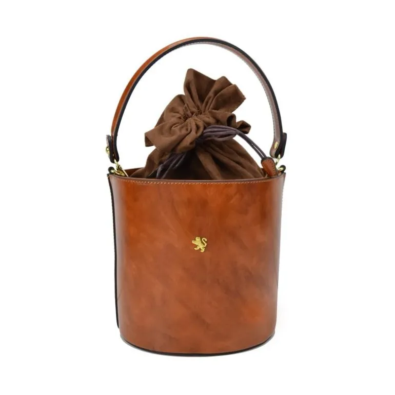 Materiał Skóra cielęca garbowana roślinnie. Szerokość cm 20. Wysokość cm 19. Głębokość cm 17. Rączka ze skóry. Długość dłuższego ze skóry: 120 cm. Waga kg 0,5