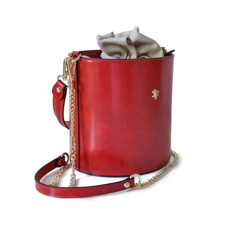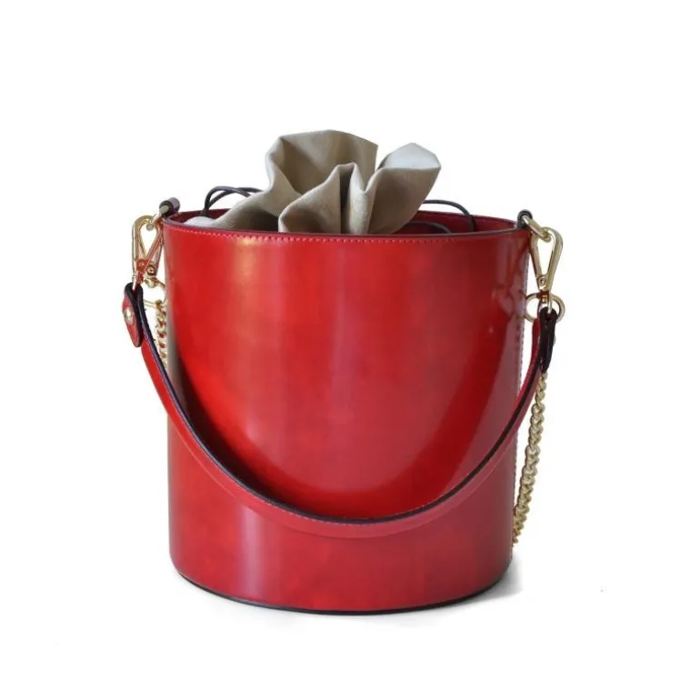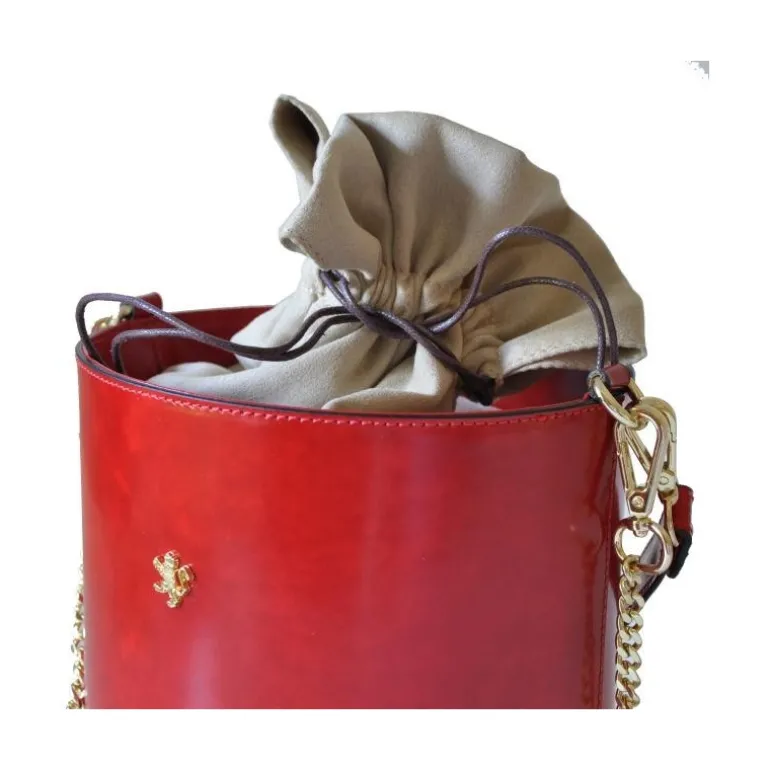 Skórzana torebka damska na rączce z łańcuszkiem. Obok tej oryginalnej torebki nie można przejść obojętnie! Torebka Secchiello przyciąga spojrzenia swym niespotykanym, zaokrąglonym kształtem. Pomimo niewielkich wymiarów, jest bardzo pojemna. Posiada jedną przestronną komorę, w której bez trudu pomieści się niezbędny ekwipunek każdej stylowej kobiety. Torebka damska skórzana Secchiello r335 występuje w kilku wariantach kolorystycznych. Torebka została wykonana z doskonałej jakości włoskiej skóry cielęcej garbowanej roślinnie.